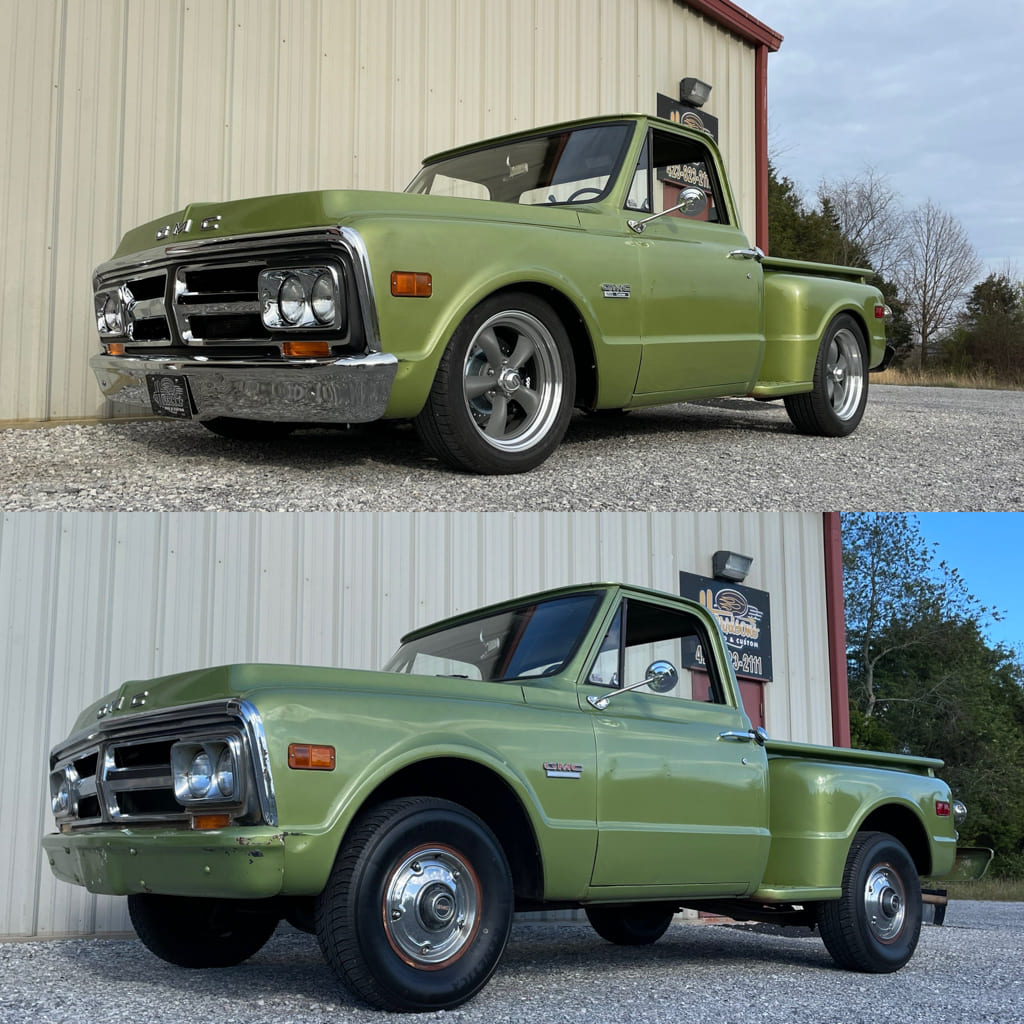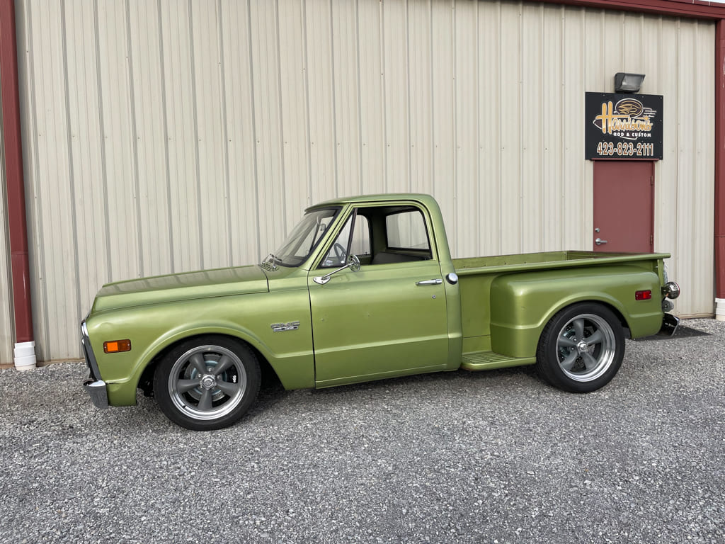 This is the ’71 GMC 1/2-ton Stepside owned by my Uncle Jack Fillers from Greeneville, Tennessee. It was originally a 292 inline-six with a TH350 transmission and a 12-bolt 3:73 rear. It has had one obvious repaint in its life where the bumpers were painted the Factory 504 Medium Olive Metallic. The original wood bed floor was pretty much gone and it had some minor cab corner/rocker rust that needed to be replaced. The project was the result of a conversation in my booth at the NSRA Street Rod Nationals in Louisville, Kentucky, between Jim Ries and myself about whether we’d be willing to work with CTP and Jim’s company, Classic Performance Products (CPP), to do some articles showcasing product. Since we’d already been using CPP in the shop it seemed like an easy answer and numbers were exchanged to move forward.