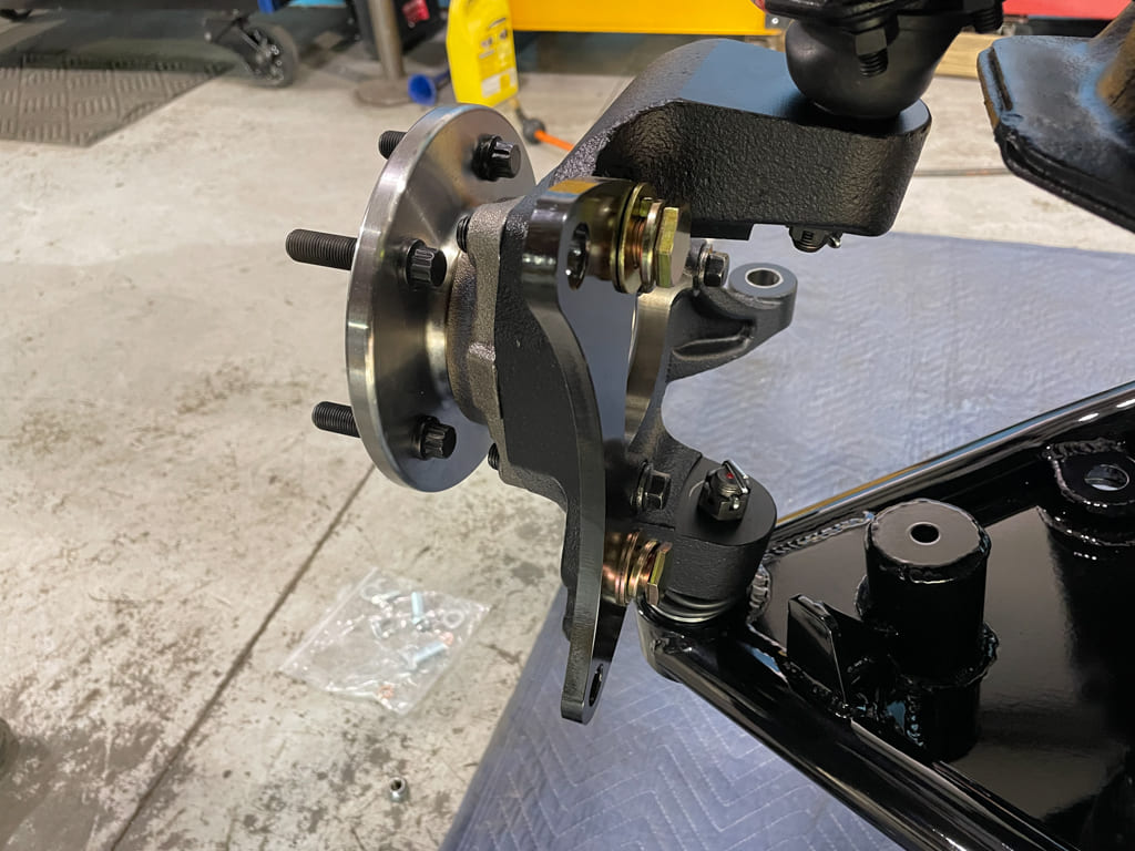 The front CPP Big Brake kit went on smooth using supplied instructions. The X10 Modular Spindles with the new modular wheel hub assembly is the way to go. No greasing bearings, no castle nuts, or cotter pins. Simply open them up and install them. The preload is right every time. We used CPP stainless hoses then plumbed up the rest with custom bent lines once the master cylinder was in place.