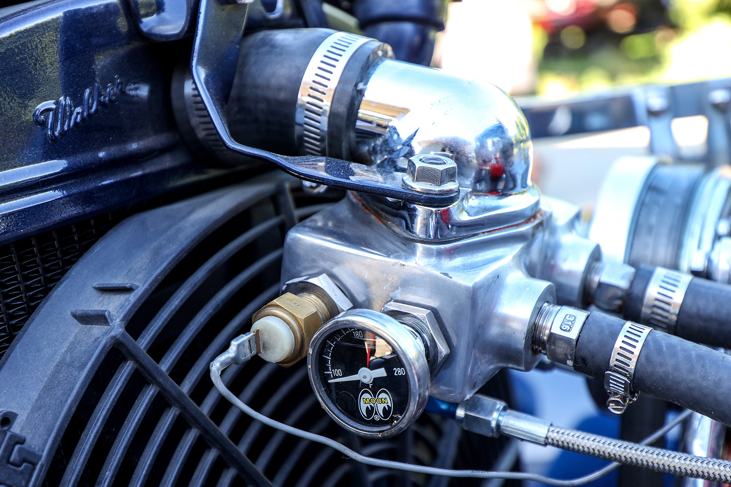 The rear featured a Halibrand V-8 quick-change paired with a Truetrac differential, 3.78 gear, enhanced by the robust grip of Moser 31-spline axles and the sleek touch of Buick-finned aluminum brakes. Aldan coilovers completed the rear setup. Moving ahead, the front axle—a historical piece from 1932—was skillfully dropped by Industrial Chassis. The wheels are Halibrand Smoothies, 15×7 in the rear, and American Rebel Gassers, 15×5.5 in the front to match the smooth lip of the rears. Tires are BFGoodrich P255/70R15 and P155/80R15.