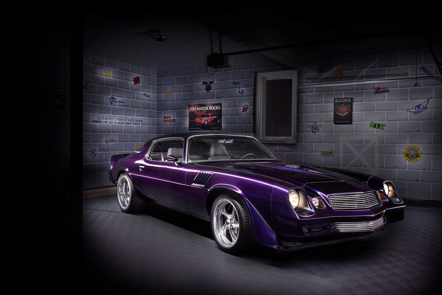 My wife and I bonded over ’80s rock music and I played in local bands for 15 years. Mike named our project “Rockstar.” We didn’t know if we were going to stay with that name but as the build went on it really stuck with us. Since then, we added some music themes to the car, such as painted music notes on the hood scoop. I drew out the music staff and notes to Bon Jovi’s “Livin On A Prayer” on the driver side and Eddie Money’s “Take Me Home Tonight” on the passenger’s side of the scoop and had a local artist hand paint it. We had another local artist create the “Rockstar” art on the engine covers and guitar art on the rear fuel door. Overall, the total build took four years to complete.