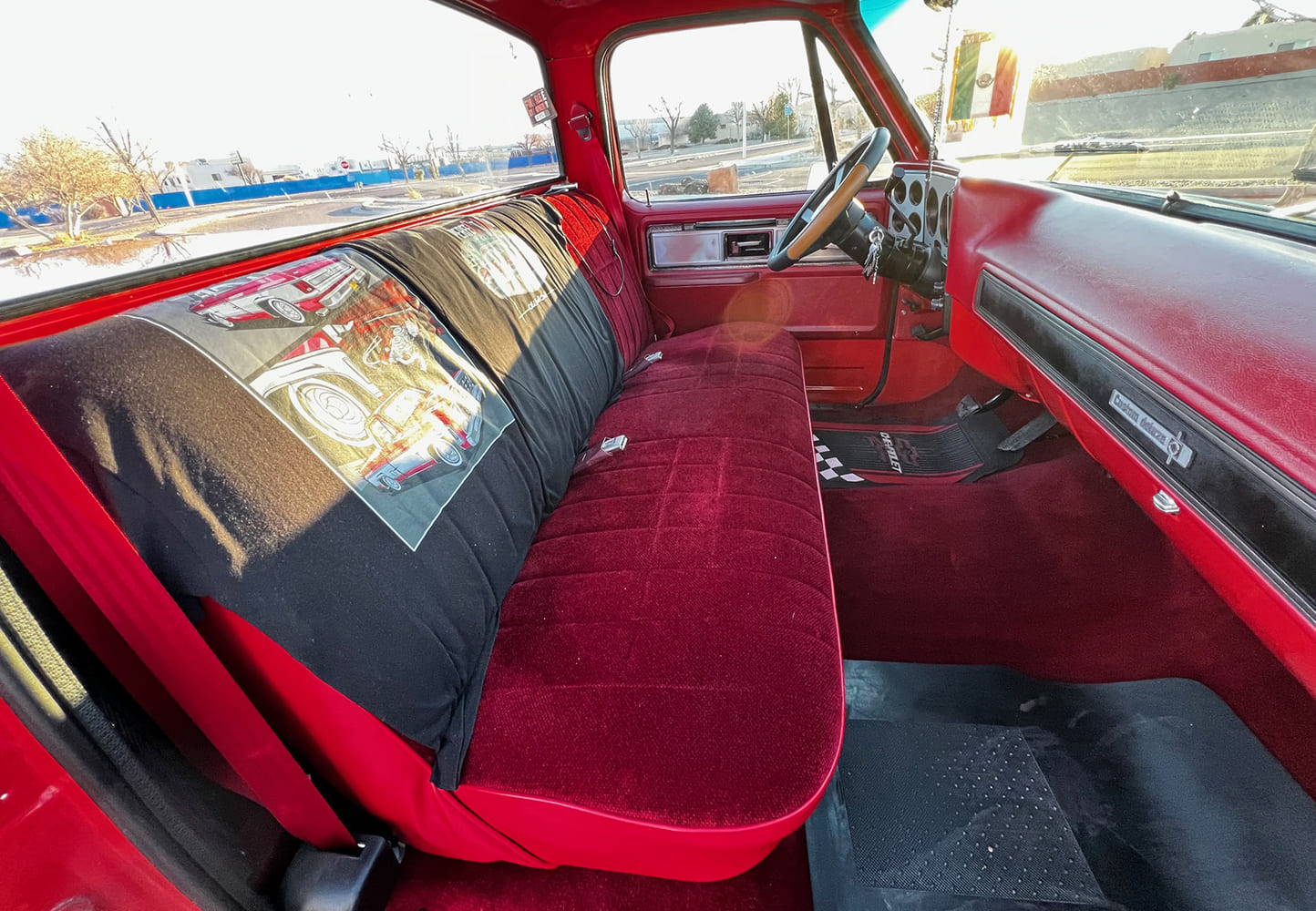 Background on the Car: I originally bought my 1979 Chevrolet Custom Deluxe in 1991 for $1,000 to be used as both my family and work vehicle. The truck had its original paint and a 250 six-cylinder, single-carb motor. After a decade, I started to restore the truck in my own garage, when I found spare time with the help of my two sons. I upgraded the motor to dual carbs with subtle chrome and some polished parts, including a polished Offenhauser valve cover, chrome air filter covers, and a chrome break booster. For a show detail, I added underhood mirrors. I reupholstered the interior and repainted the exterior to keep the original look. I also updated the stock radio. For a more modern touch, I upgraded the stock suspension and installed a Ridetech RidePRO E5 kit. I also swapped out the stock bumpers for chrome bumpers and swapped out the stock steering column for an updated tilt steering column. To keep with a semi-original look, I kept with 15×8 U.S. 455 series wheels and 255/70 tires. Everything in my truck has been rebuilt from the top down.