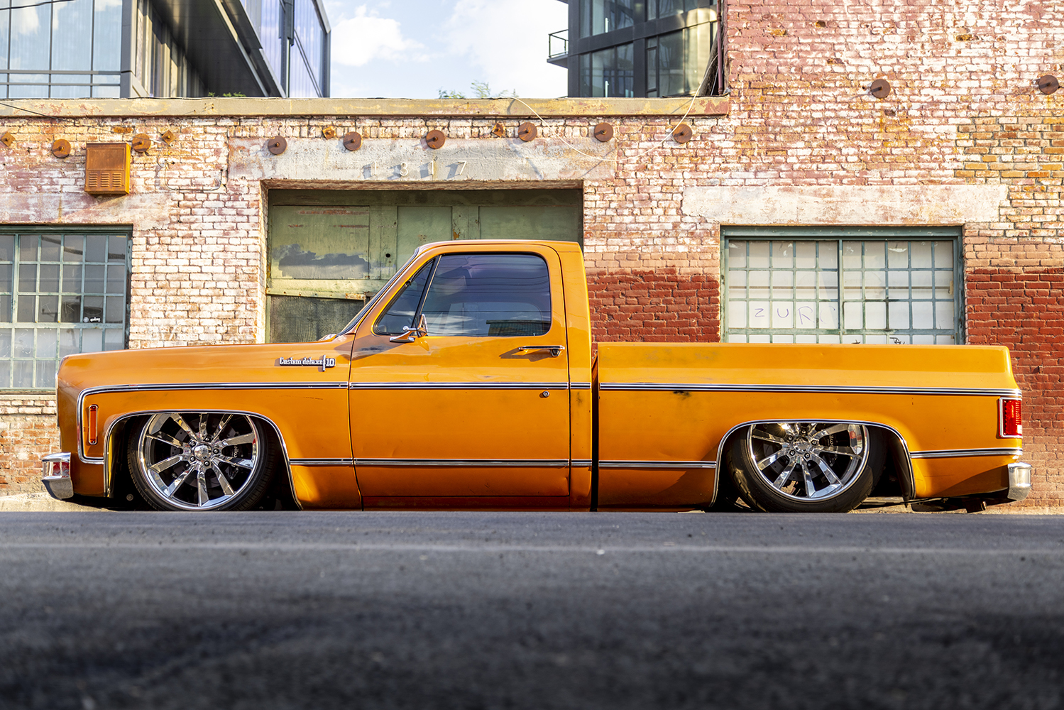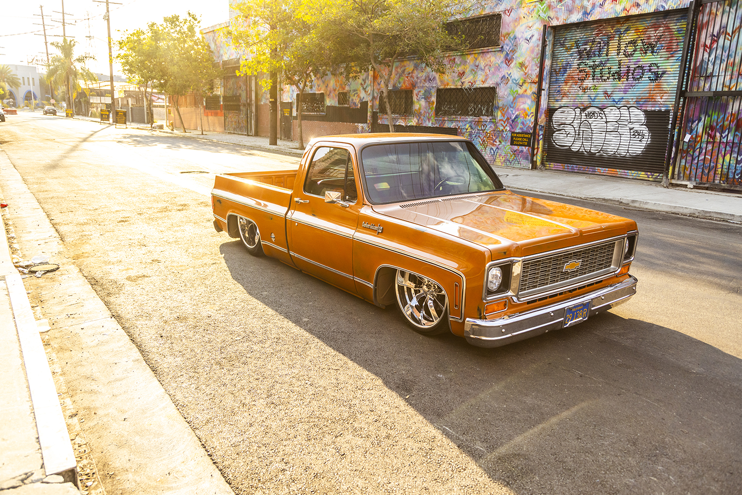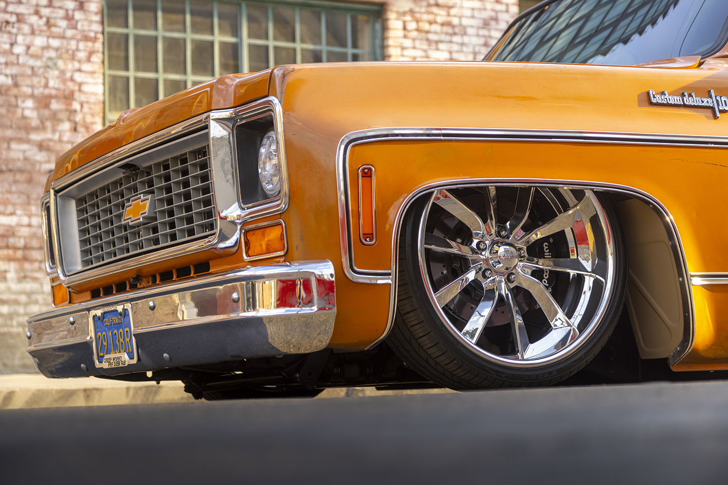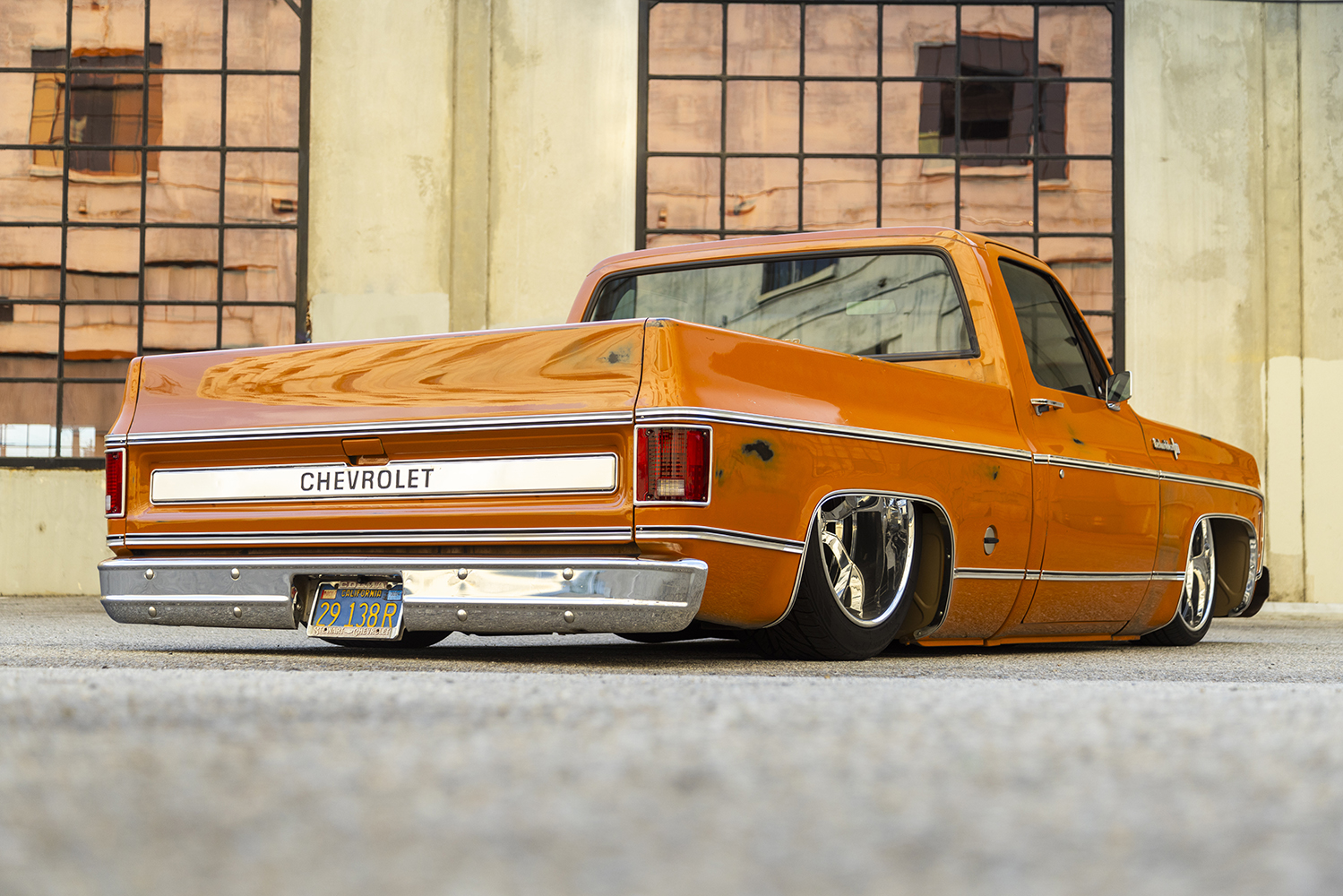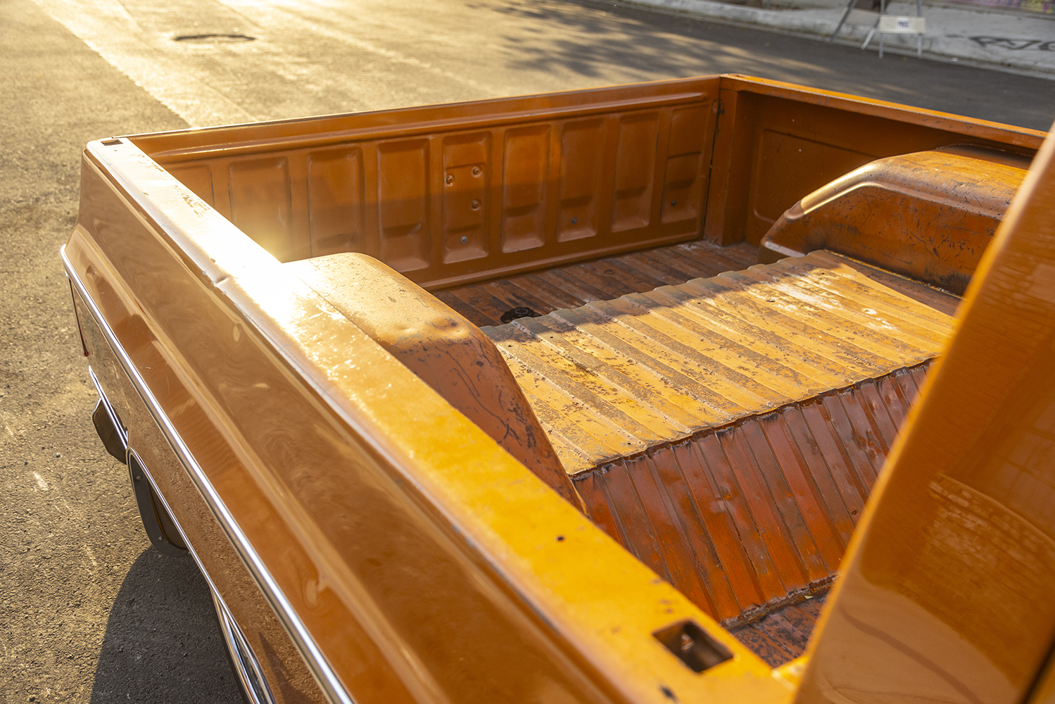 “Mr. Simpson. First off, my dude Eddie Franco told me that our buddy, that sexy Ginger Derek Schaefer, actually started this build back in 2016 but he got busy so on a shelf it went at his shop in San Luis Obispo. After years of collecting dust and a few years of me trying to get it, I was finally able to pry it from his hands. Never had a Squarebody and honestly didn’t realize the love the Squares seem to bring. It’s a killer one-year-only color, the first year of the Squarebody, and the only year of no factory driprails … pretty cool, I think. If I recall correctly, [Schaefer] named it Mr. Simpson because it’s orange, like orange juice and, well, O.J. Simpson. So, a few cocktails and some mash-up of whatever and there you have it: Mr. Simpson. Oh yeah, did I mention the OE patina on it? Sheesh!”
