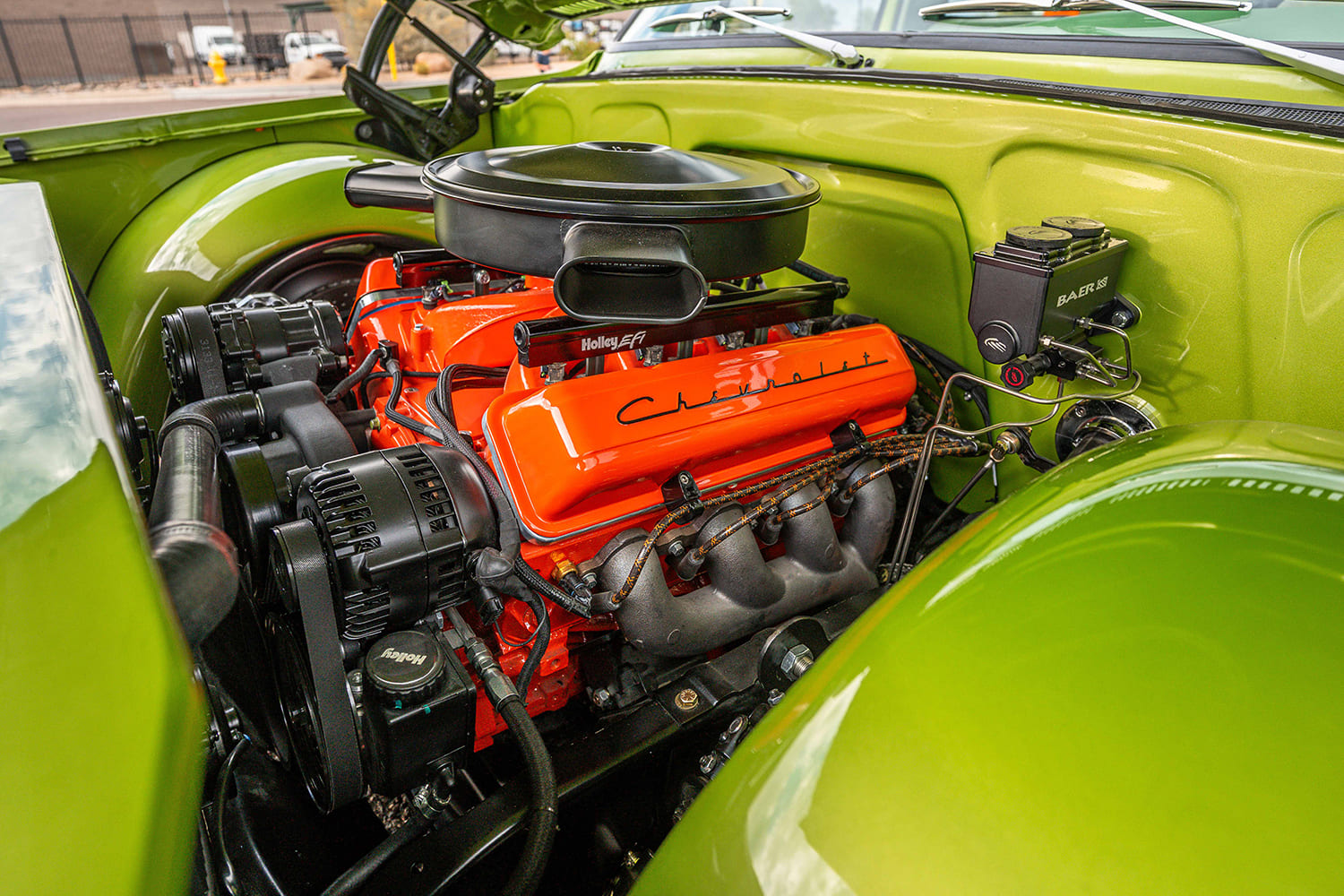 But it wasn’t until Dino’s Git-Down the following weekend that I not only got to appreciate the Avocado Truck more intimately in person, I got to meet its owner, Donny, and see how enthusiastic he was about how well the Chevy turned out, and you can probably see why. The colors work so well together—so much so, you wonder why Chevrolet only used them together on the Squarebody for one production year (that I’m aware of), and combined with the matched Apex leather interior, the Chevy orange engine, and those brand-spanking-new U.S. Mags Prescotts, well … four-wheeled feng shui, just as the title implies!