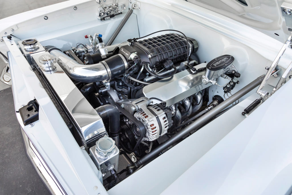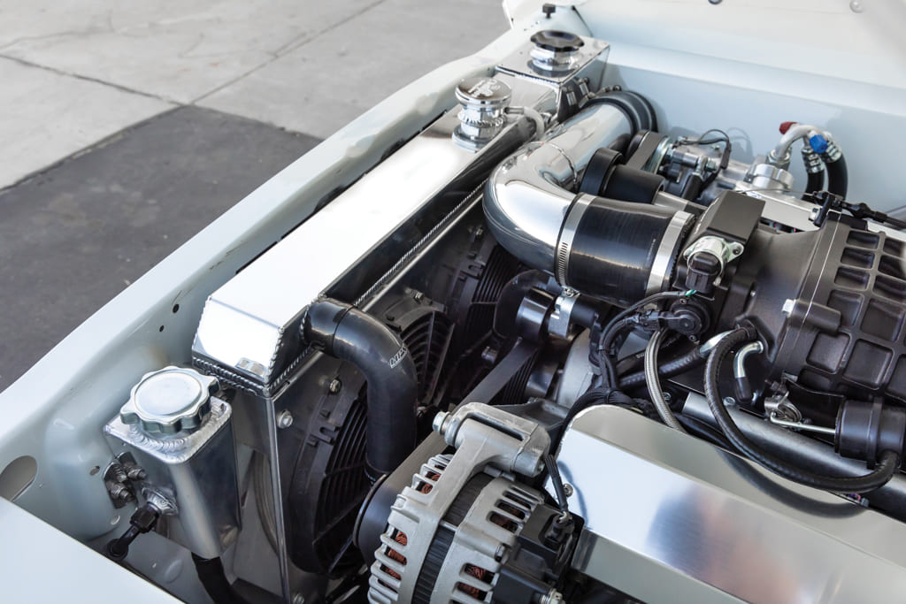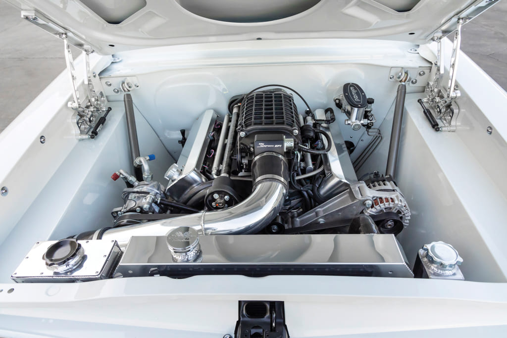 The horsepower department consists of a mild-mannered LS1, topped with a Magnuson supercharger. Turn Key Engine Supply assembled the engine package, which is a potent combination that makes approximately 500 hp on pump gas. TCI headers lead into a custom stainless steel exhaust system built by Lakeside Speed and Shine. A Champion aluminum radiator keeps the blown LS1 cool, while a 4L60E automatic transmission transfers power to the 3.55:1 ring-and-pinion inside the Currie 9-inch rearend.