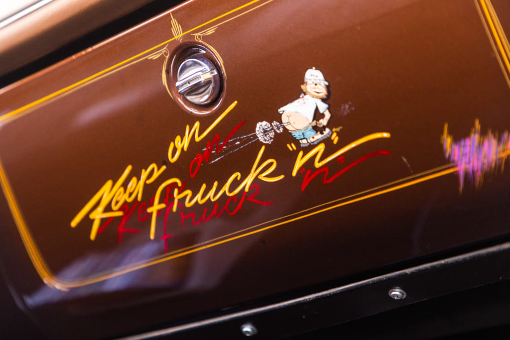 “I have been slowly fixing a few minor things and making it my own with honor to his vision. One of my fondest memories, besides working with my dad, was commuting to work with him toward the end of his career and looking at the glovebox in the truck that he had someone paint, giggling to myself how cool it was. Now, many years later, every time I look at the glovebox of the truck I get that same feeling.”