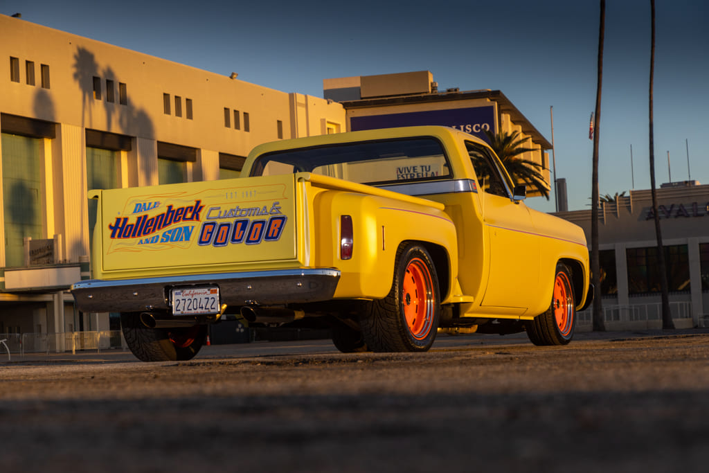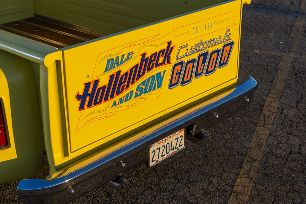 “My dad, Dale Hollenbeck, bought the truck in the late ’80s from Harry Craycroft, a local Bay Area hot rodder, who had bought the truck new in 1974. [Craycroft] customized it for the 1975 (or possibly 1976) Grand National Roadster Show, then held at the Oakland Coliseum (often referred to as the Oakland Roadster Show). Back then it had a vinyl top and a padded tailgate … very ’70s style! Dad got it and removed the vinyl top and added his touches to it: side markers, new taillights, quad headlights, floating bar grille, third brake light, frenched antenna, frenched door locks that open doors, shaved driprails and emblems, and smoothed tailgate replacing the padded one. It was Dale’s daily driver for 30 years, from Concord to Oakland and back.