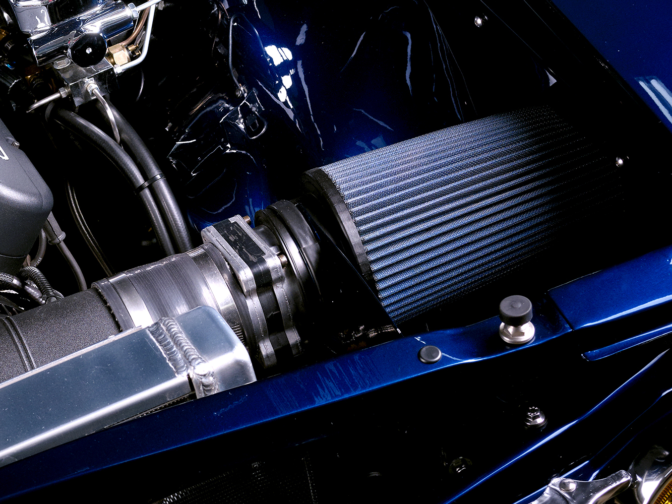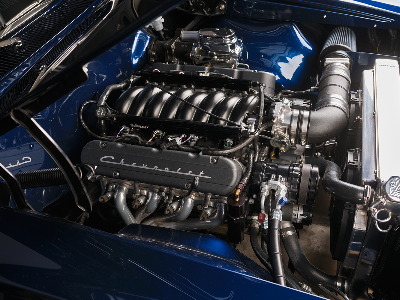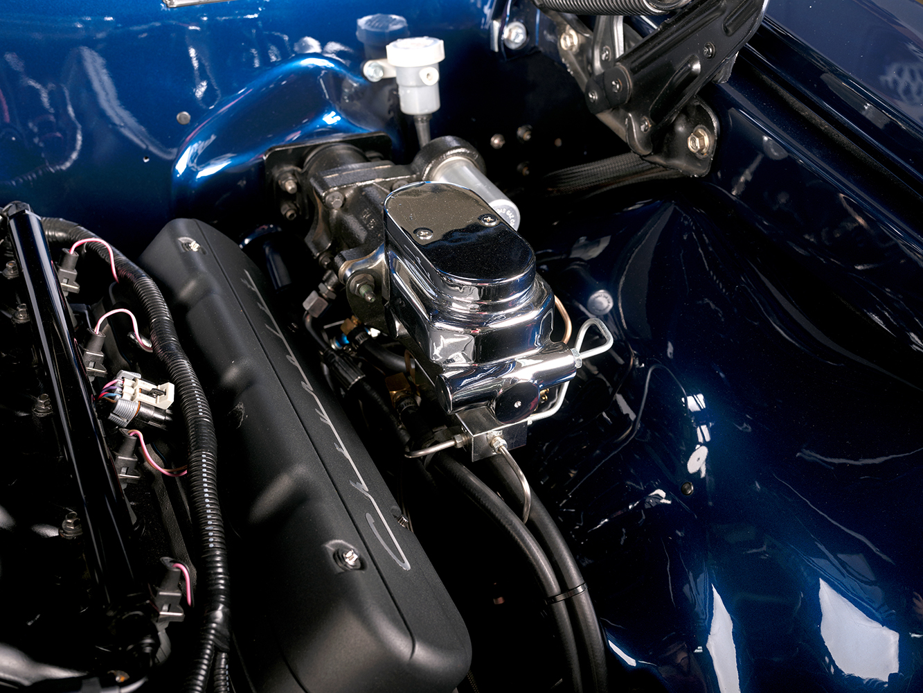 Ancillaries: Holley water pump, SPAL dual electric fans, Griffin aluminum radiator, Tanks Inc. 24-gallon tank, Walbro fuel pump, RainGear Wiper Systems