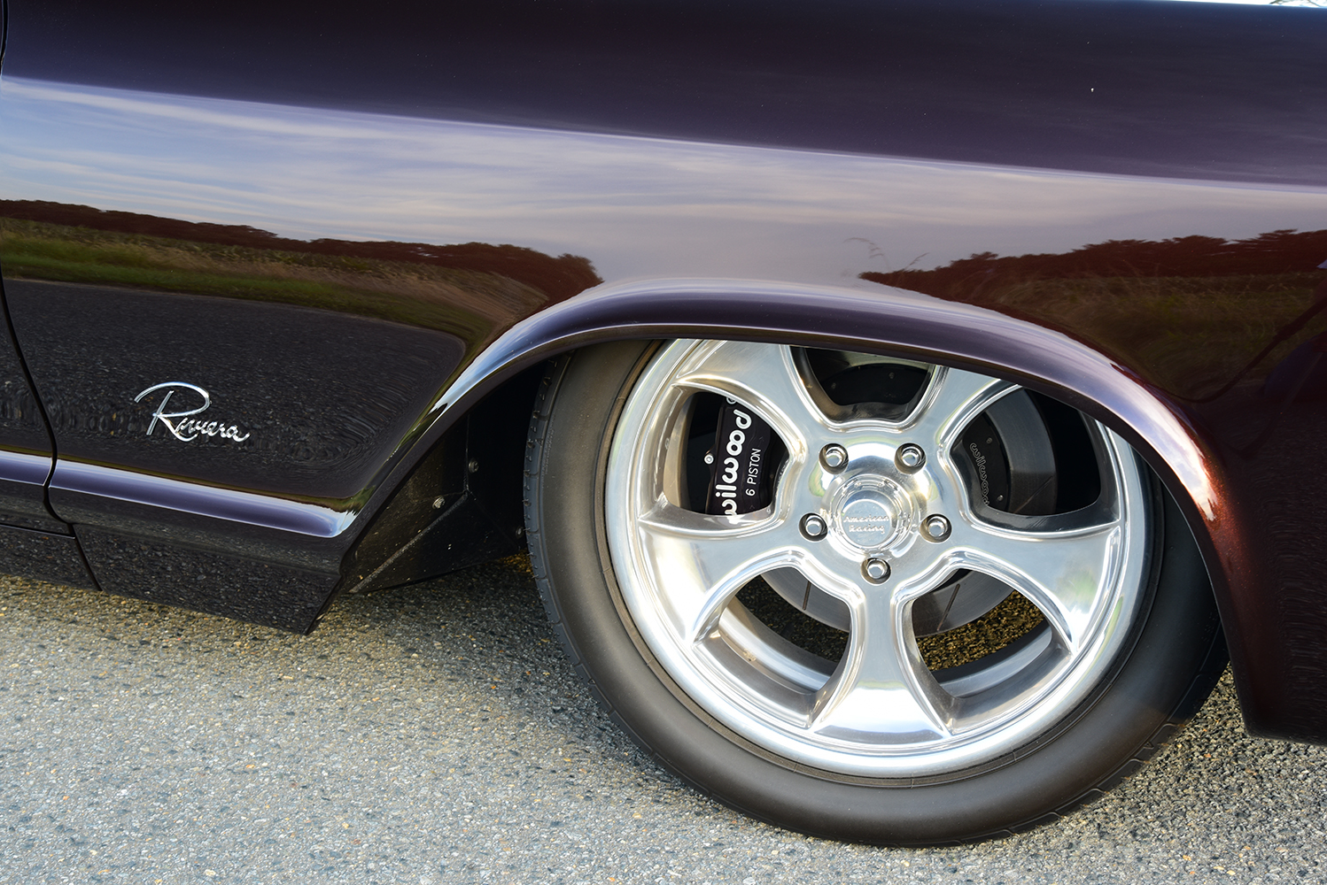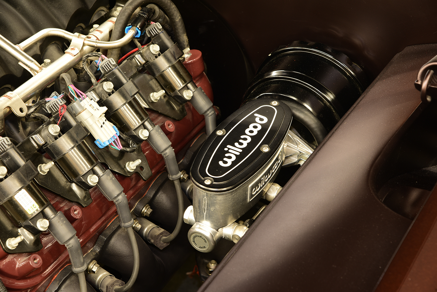 When it’s time to slow down, a Wilwood Engineering dual power master moves fluid through stainless lines to matching forged Dynalite Pro-Series 11-inch drilled-and-vented rotors with forged billet four-piston calipers mounted at each corner. Linking it all to the street with traditional style, there’s a set of fully polished American Racing Gasser-Series wheels, sized 18×8 in the front and 20×10 in the rear, capped by Goodyear Eagle GT II tires, sized 245/45R18 and 285/50R20 respectively.