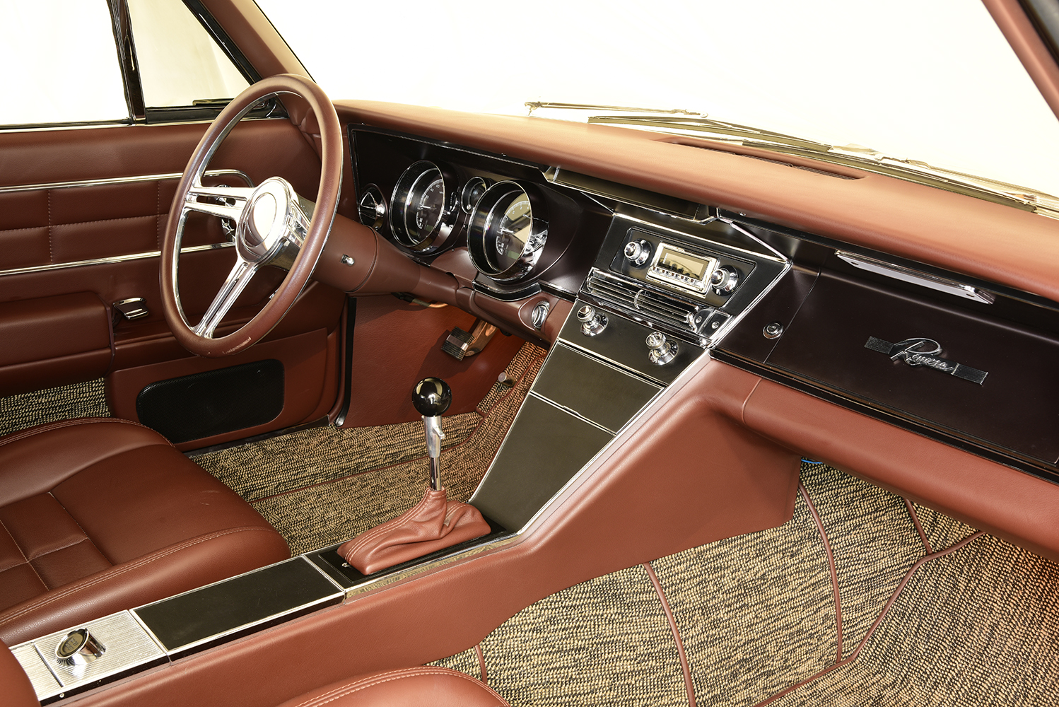For a touch of elegance, team member Dean Alexander completely reworked a set of 2012 Infiniti G37 coupe seats, creating custom rear seating and wrapping everything in classic pleated chocolate brown leather. He also designed matching side panels and a headliner, complemented by Peppercorn-tone square-weave carpeting. The finished car is brimming with allure, elevating one of GM’s finest designs to the next level with an impressive array of subtle details integrated with modern-day performance and handling.