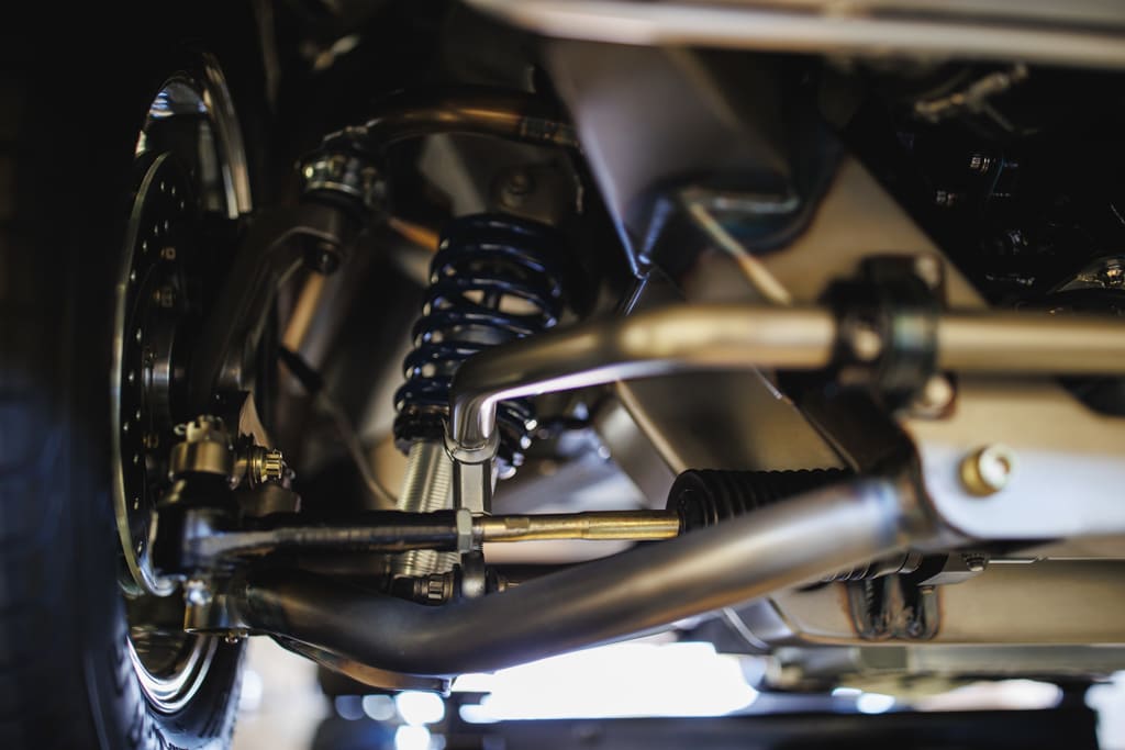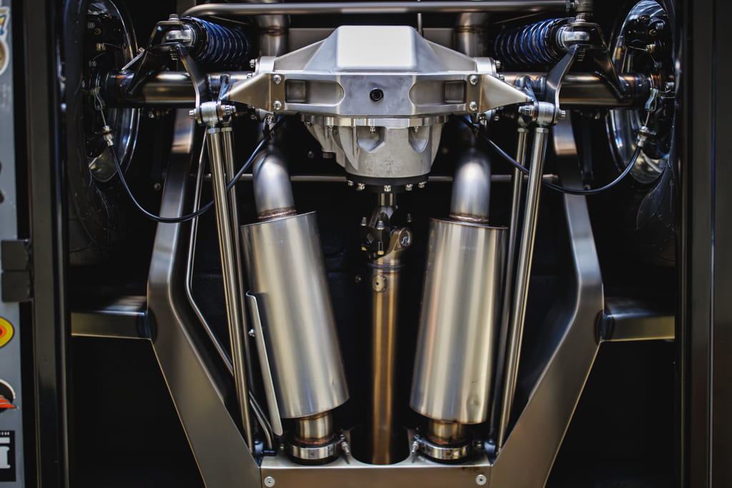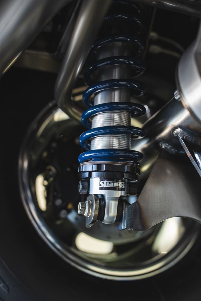 Rear Suspension: Full custom four-link with Panhard bar by Matt Tomb, Strange double-adjustable coilover shocks