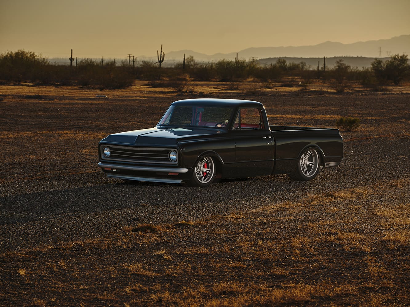 When it comes to stealth hot rods (subtle yet menacing), to me, nothing is more iconic than black-on-black (with red accent) ’60s-70s Chevy muscle car with the proper stance, and, of course, some mean motivation underhood. Typically, that describes many a Chevelle, Camaro, and even Nova. But in this case, it only begins to describe Mark Deatley’s 1972 Chevrolet C10, built by none other than Hot Rods by Dean (Livermore).