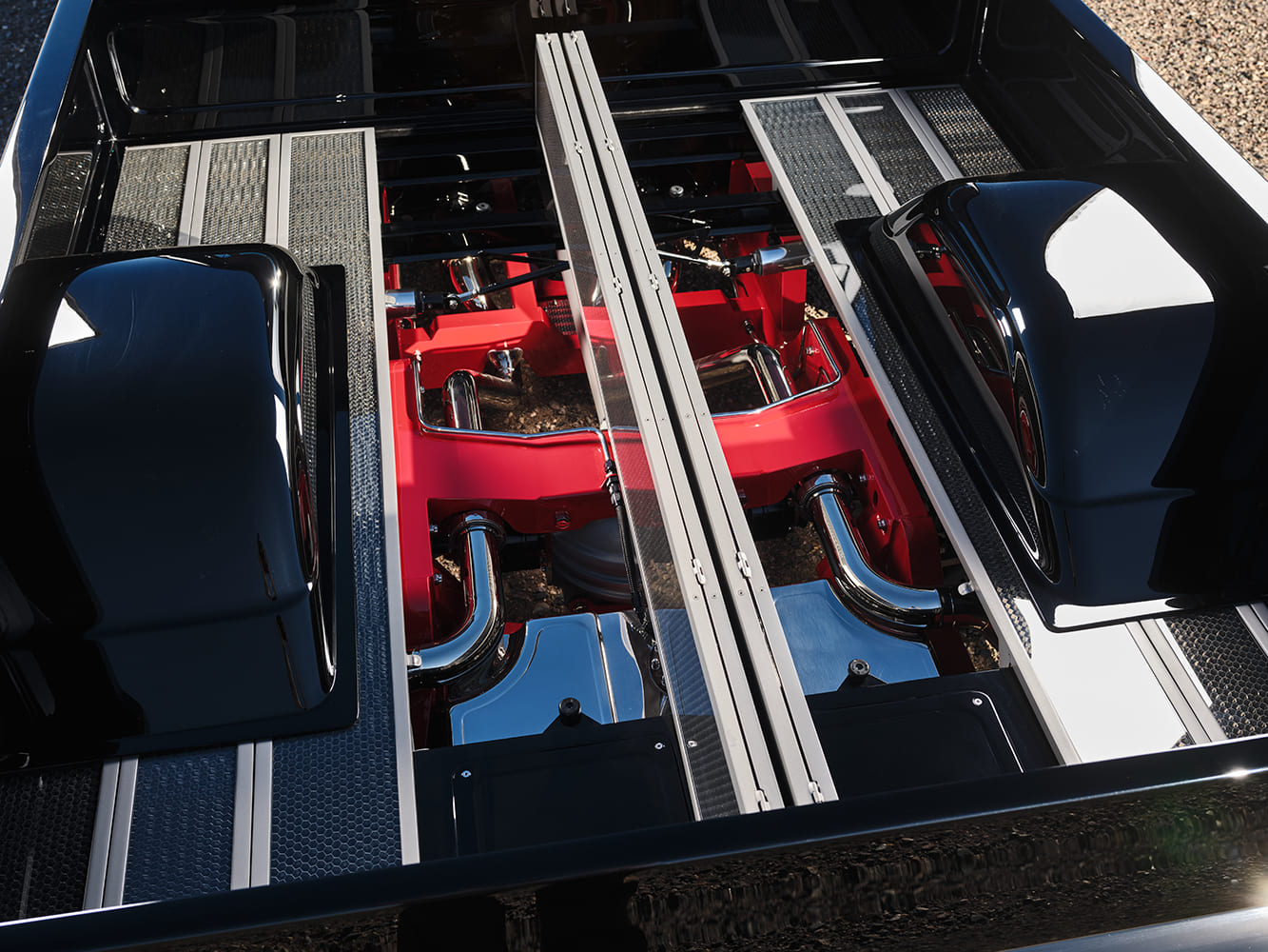 Beneath that aforementioned styling work lies a Roadster Shop Fast Track Stage III chassis with independent front and rear suspensions, a Strange Engineering centersection, and RS-Penske dual-adjustable coilover shocks. All hardware has been replaced with high-quality ARP components, including many custom-made nuts and bolts to fit the modified chassis specifications. Braking is comprised of a CPP HydraStop system controlled by a Kugel pedal assembly powering Baer Claw Extreme/Pro calipers situated behind Schott’s Mod 5 d.concaves in 18- and 20-inch hoop sizes with Michelin Pilot Super Sport radials. Finally, powering the ’72 is a Connect and Cruise system from Chevrolet Performance, featuring an LT4 engine that produces 650 hp and 650 lb-ft of torque, mated to a 4L75E transmission with a factory 2800 stall speed converter. The custom exhaust system, including headers and tips, was fabricated in-house at Hot Rods by Dean.