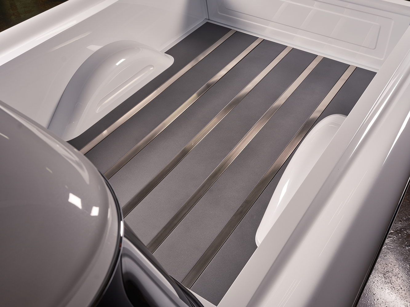 Outside is where the Graham influence really starts to take shape … literally. From front (flipped, snug-fitted, smoothed bumper, and handmade floating grille insert) to back (reshaped gate, exhaust ports frenched into bumper), Graham massaged the entire Cameo, blending factory lines—and even creating some new ones (such as the pillar alignment with the roof chop)—to create a truly one-of-a-kind custom Chevy. With all said and done, Graham’s better half, Tasha, coated the Cameo flawlessly in a Pearl White Glasurit finish.