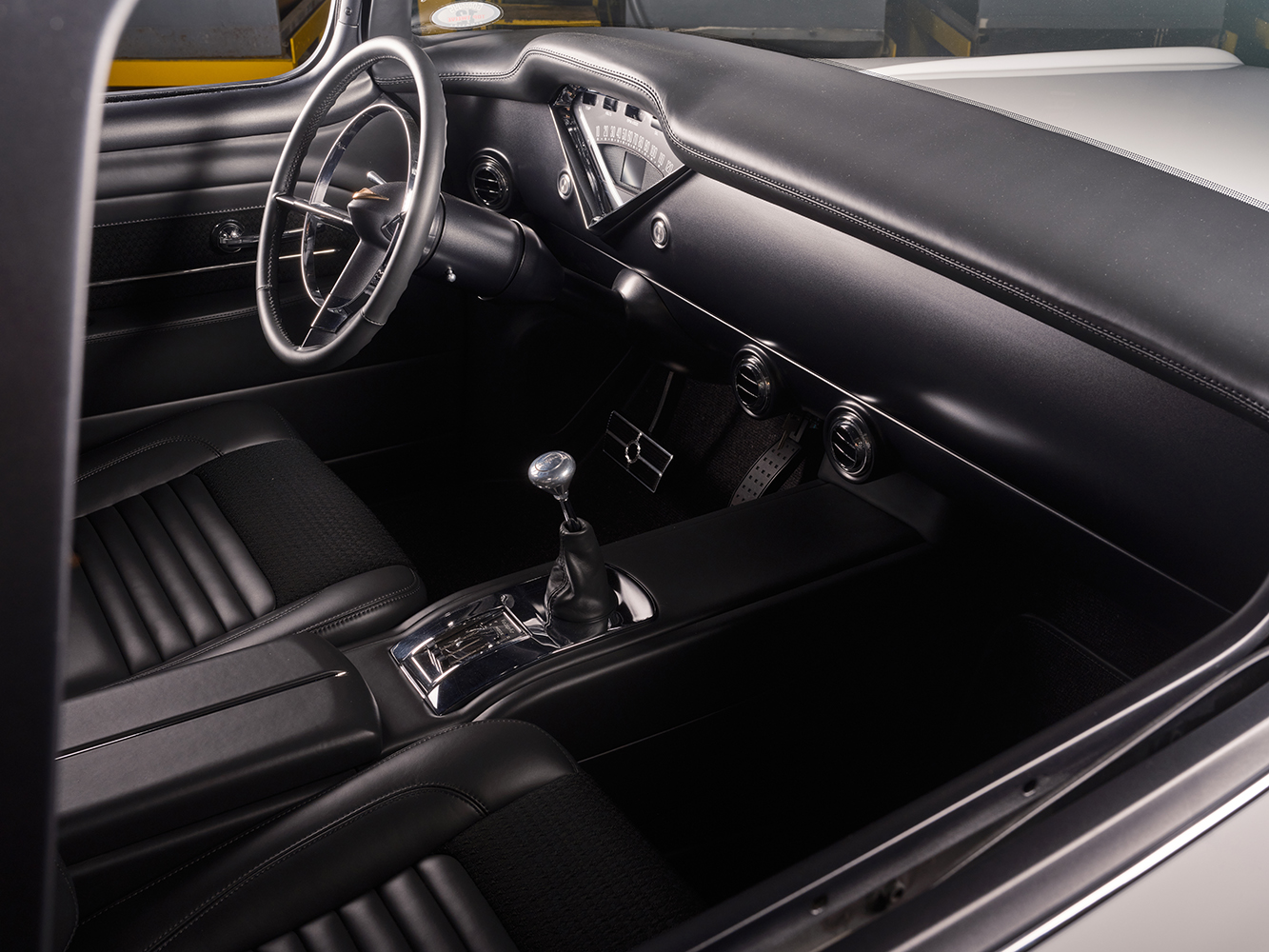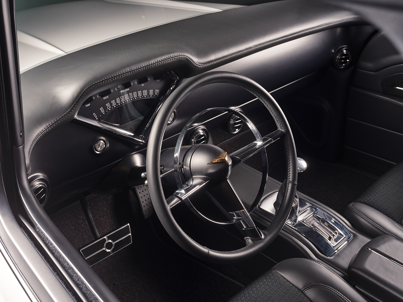 Finally, before Mark could once and for all take possession of his birth-year makeover, Jason Graham Hot Rods wrapped up the Cameo’s interior, which included satin metallic gray on the hard surfaces while John Miller handled the complementing leather soft surfaces—including a custom dash cover. Amenity wise, Dakota Digital gauges were added along with a Vintage Air climate-control system, Flaming River tilt column with reduced-diameter Bel Air wheel, and a Lokar shifter.