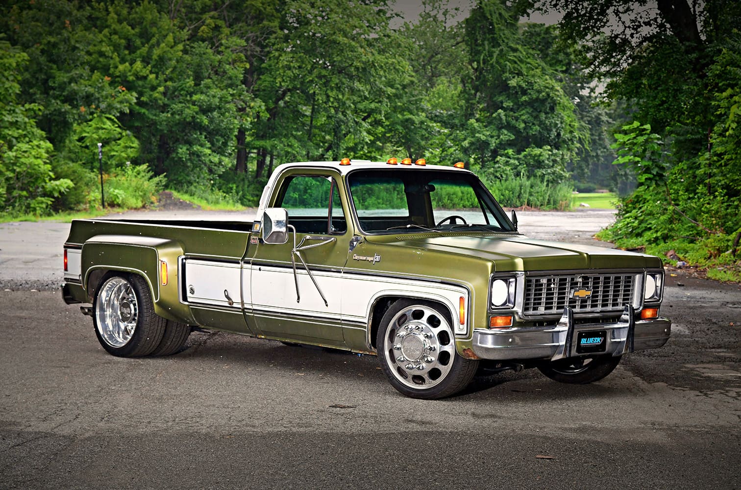 Without time to spare, Blue Sky finished up the Dually and brought it out to Columbus for the unveiling. Michael was stoked to see his new truck, which was built up exactly the way he wanted it. “I had not seen the truck in person yet. I thought it came out amazing, and I plan to drive it almost daily. So far, I’ve had it on the farm and around the community and up in Ohio at Columbus. Everyone seems to like it and I plan on knocking out a good clearcoat over the top of it to keep that patina and that nostalgia that seems to be popular. We call it “Rowdy Moss” because of its aggressive looks and earthy green color.”