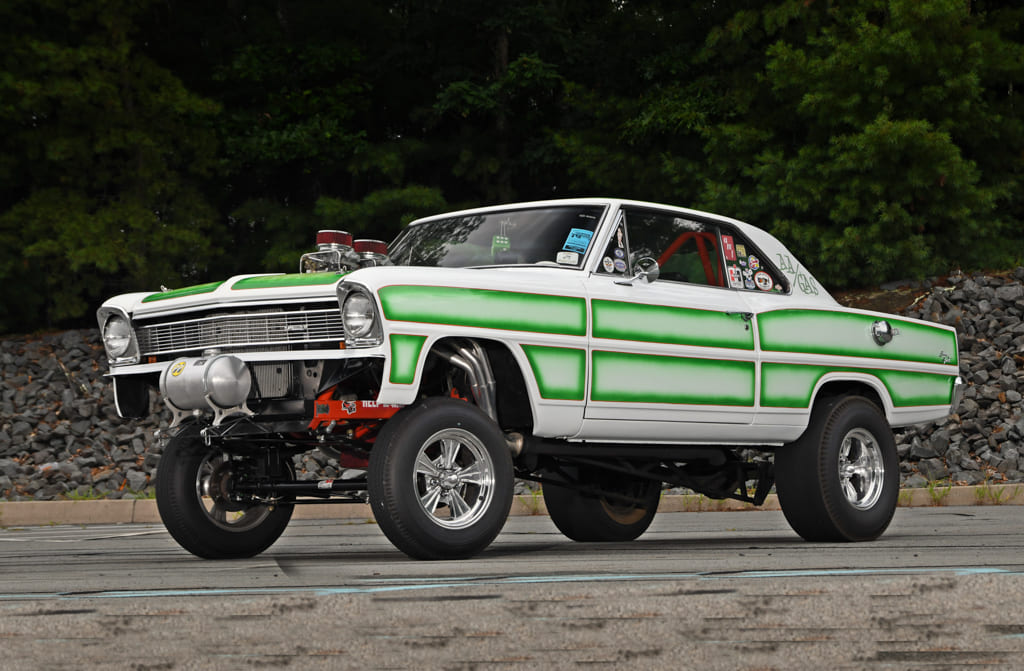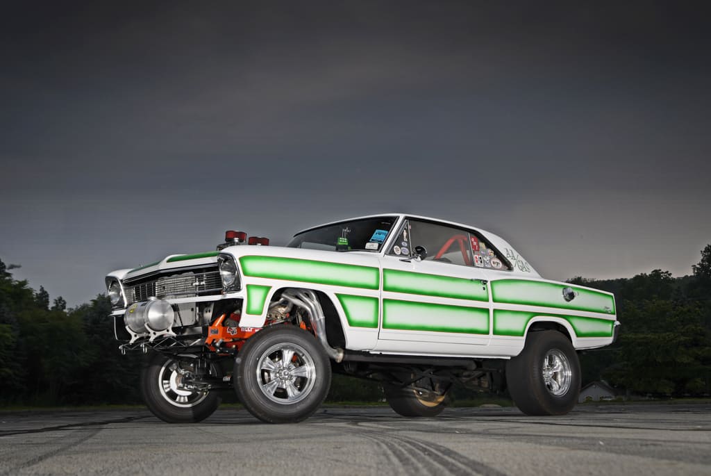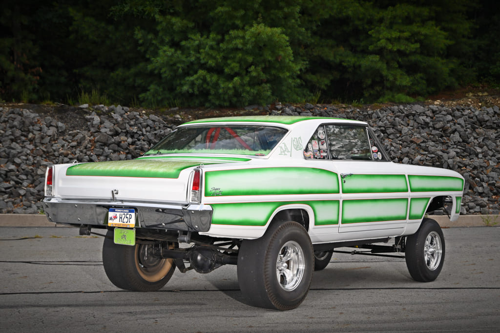 Once David got the Nova back to his garage, he put on a set of Radir Tri-Ribb wheels sourced from good friend and gasser guru Rich Conklin. He worked alongside Rich building hot rods at his shop in Montville, New Jersey. He took one look at the Nova and said, “You’re kidding me, right?” Conklin knew David wanted to bring the nose up and give it a complete gasser makeover. With plenty of work ahead to get this Chevy where David wanted it, the twosome got down to brass tacks.