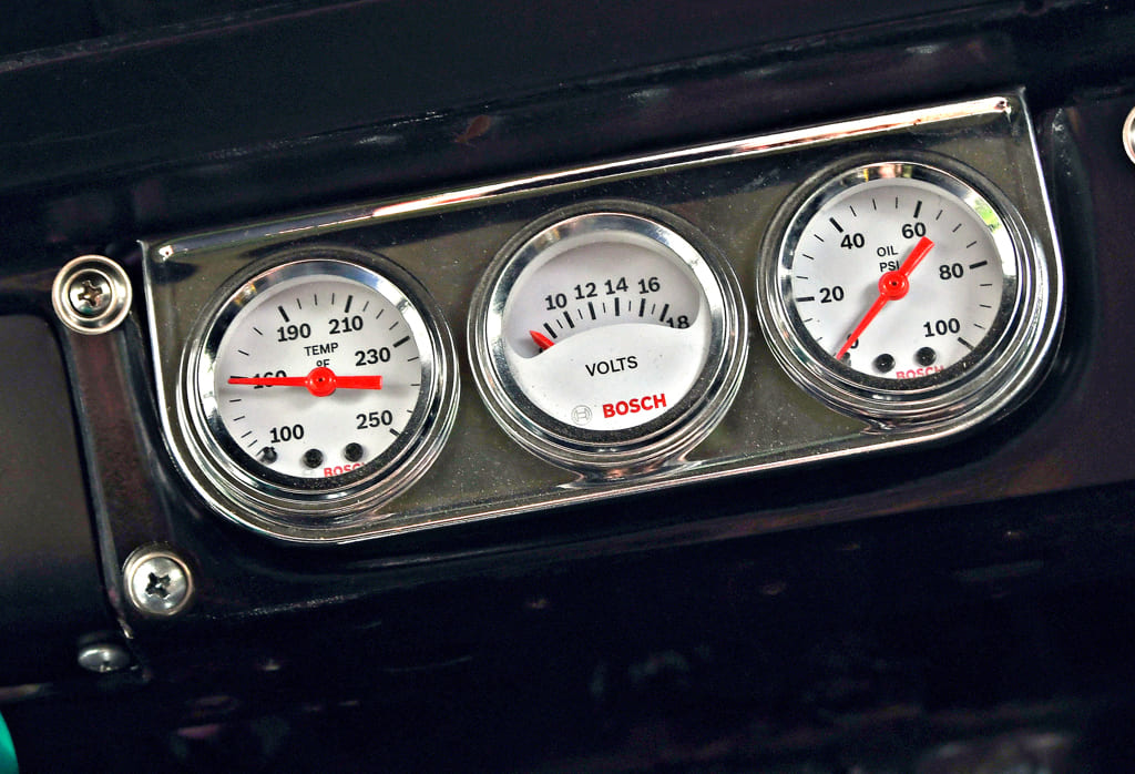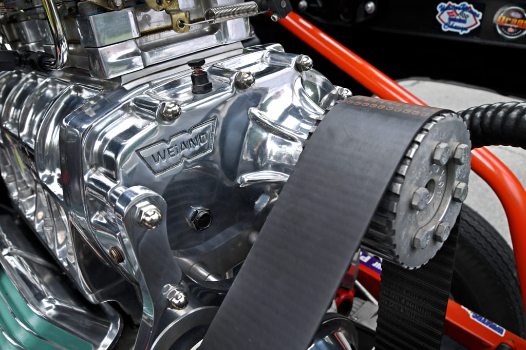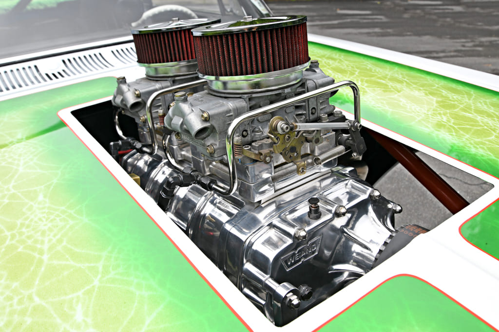 Circling back to the engine, the small-block was put together with stellar components, including a forged Callies crank, Carrillo forged H-beam rods and Mahle dished 8:1 compression forged pistons. Victor Jr. heads top the cylinders, and that Weiand 6-71 Supercharger pushes out a healthy 10 pounds of boost. A set of Patriot headers send spent fuel to a stainless exhaust David built, then topped it all off with a pair of NASCAR-style mufflers.