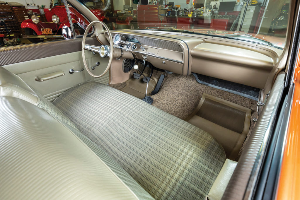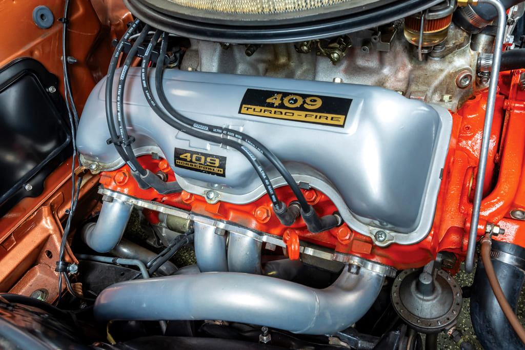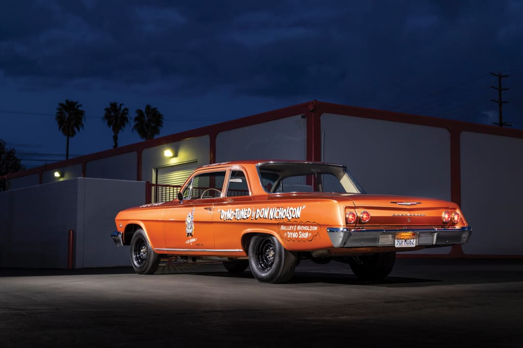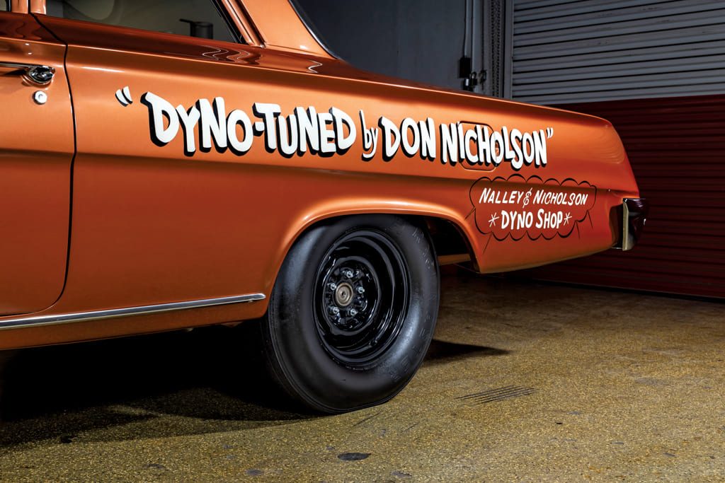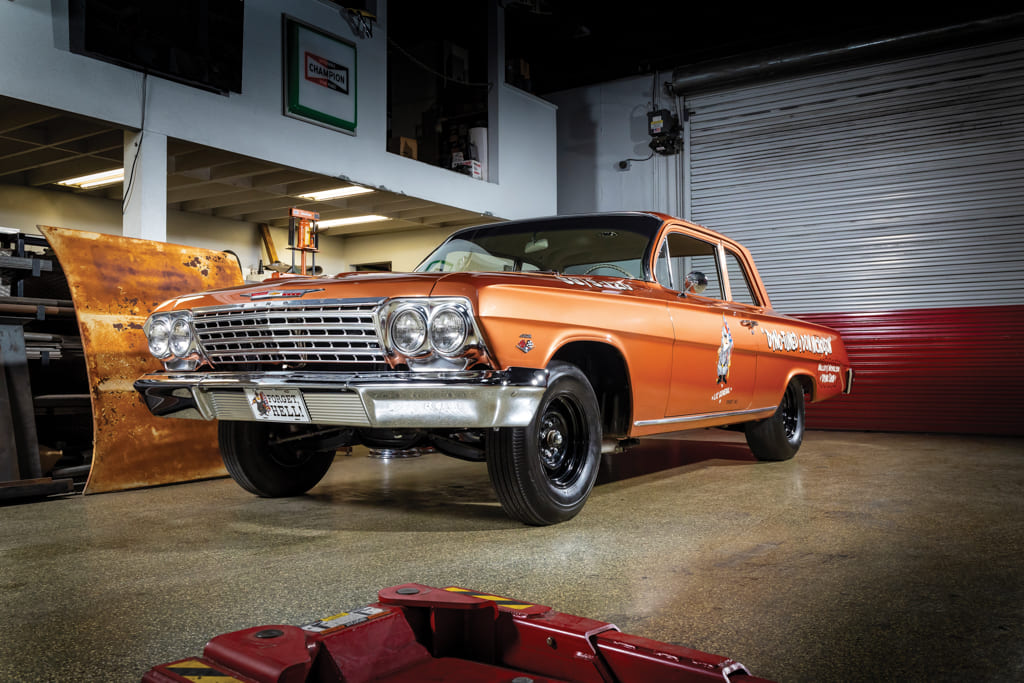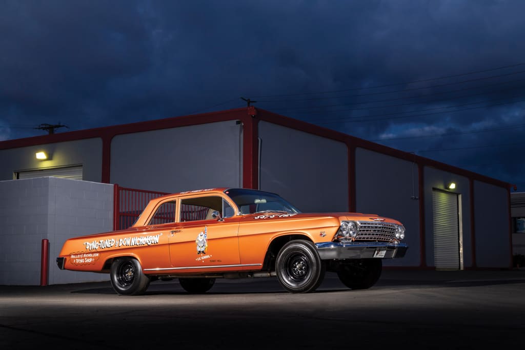 With the factory heater, radio, and rear seat delete options, this Biscayne was lighter than the Bel Air Nicholson was running. Standard ’62 409 dual-quad cars were clocked in the quarter-mile at around 14.9 seconds by the magazines of the day. The Nicholson and Platt cars were running in the low 12-second range!