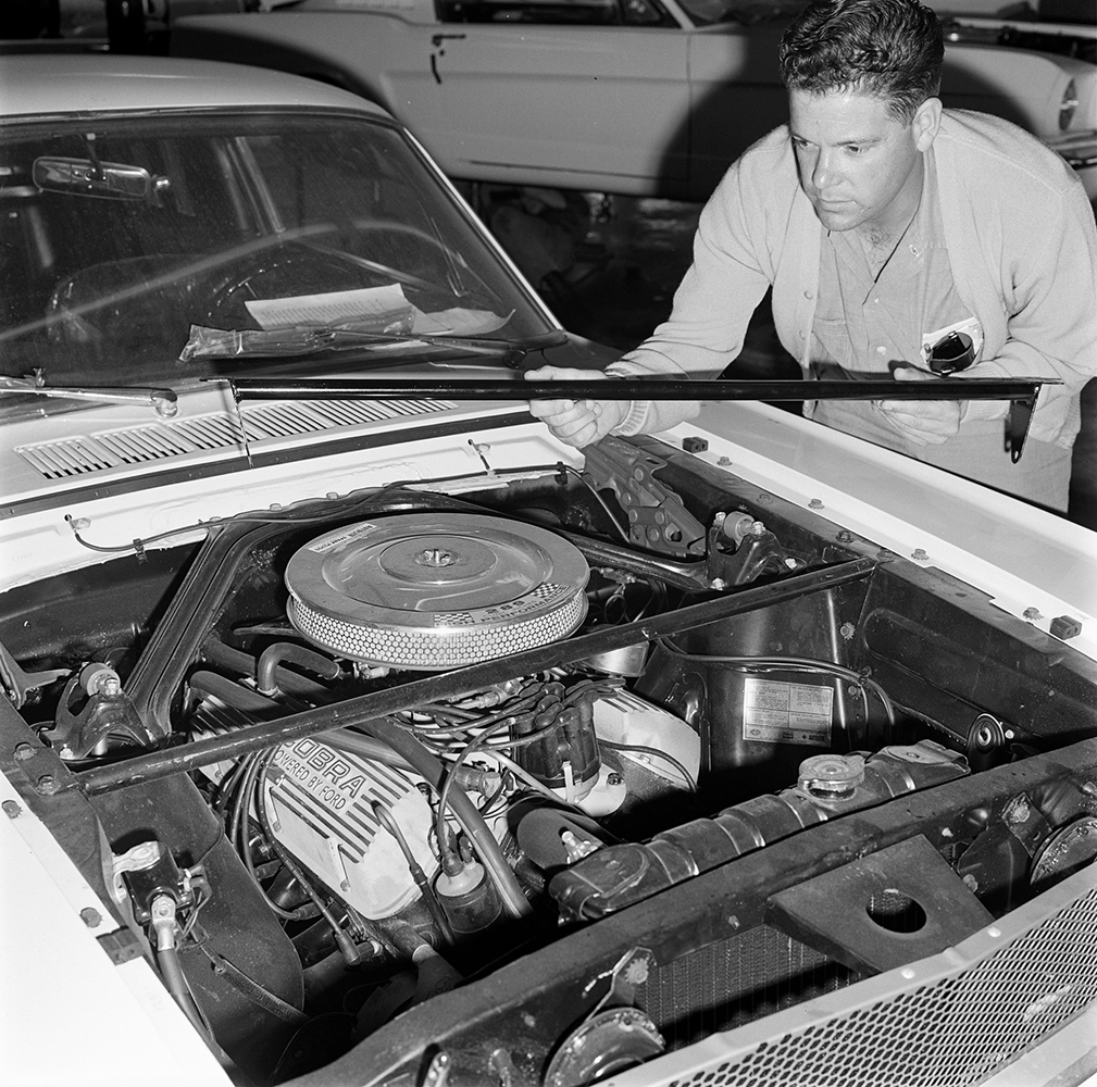 One of the first Shelby G.T. 350 Fastback Mustangs with Tex Smith, probably reading a map as he was most likely lost.
