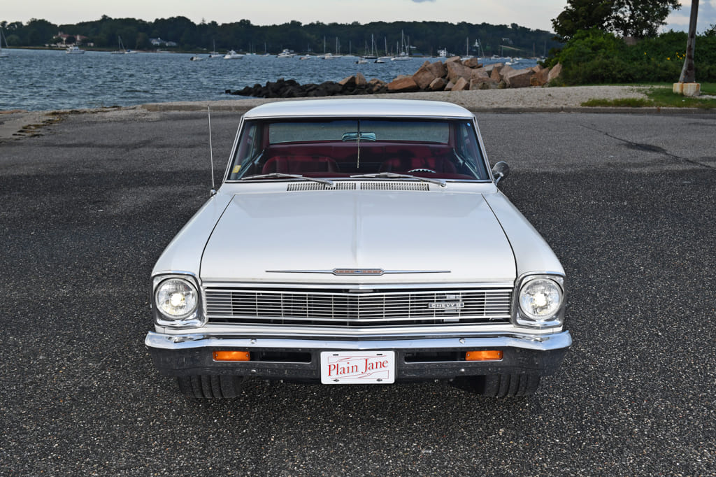 03 Overhead view of white 1966 Chevrolet Nova showcasing its red interior