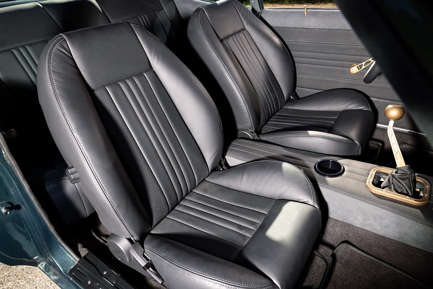 The car came to EMS in green and they had every opportunity to paint it a new color, but it was in such good shape they decided to keep it as-is. That particular shade is accented nicely by the bronze and matte black tones found all over the car. They added a 2-inch cowl hood from AMD and then put a nice matte black finish on that and the rear trunk lid. The grille and bumpers were done the same way, which also adds to the effect. It’s a clean package that has both a striking color theme and an aggressive tone.