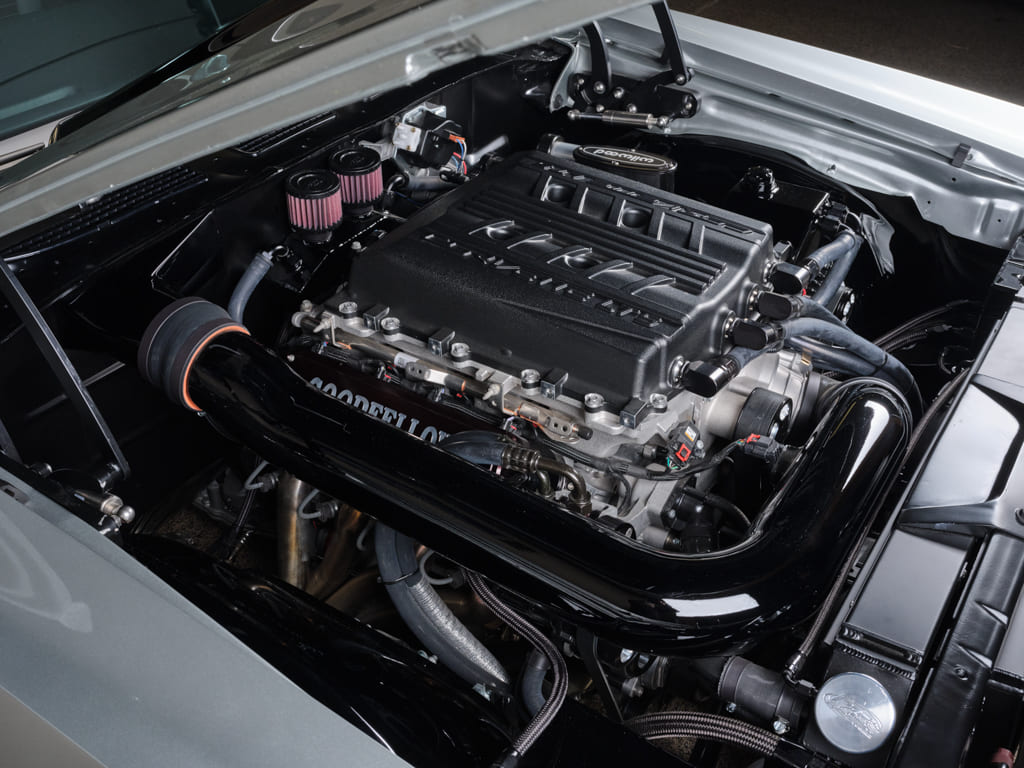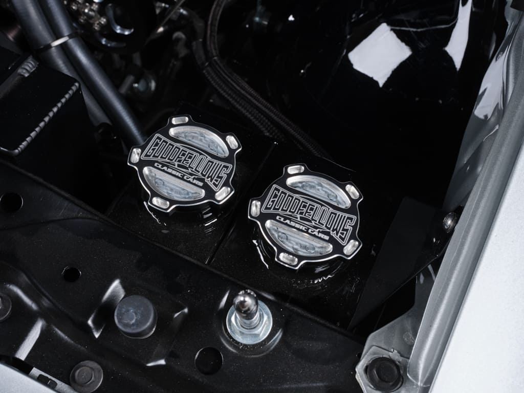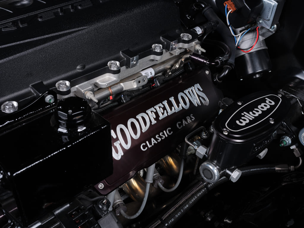 Goodfellows’ trademark muscle car builds revolve around completing cars with reliable, modern powerplants, and Joe’s ’70 was no exception. Commanding attention underhood is a fresh 755hp Chevrolet Performance LT5 dressed with Goodfellows valve covers, custom air intake tube, fronted by an attractive Wegner accessory drive system. The Custom Goodfellows 2 ¼-inch headers flow into a 3-inch stainless exhaust finished off with a pair of SpinTech mufflers creating a distinct resonance of power.