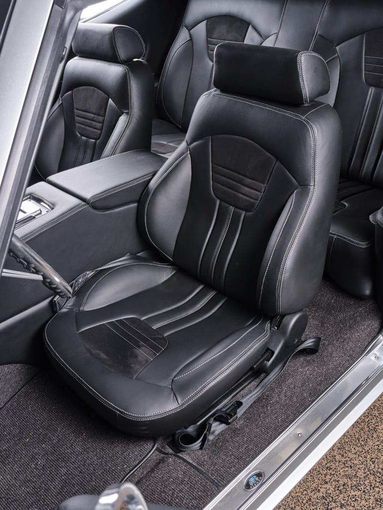Upholstery: Black leather, custom door panels by Armando’s Custom Upholstery (San Jacinto, CA)