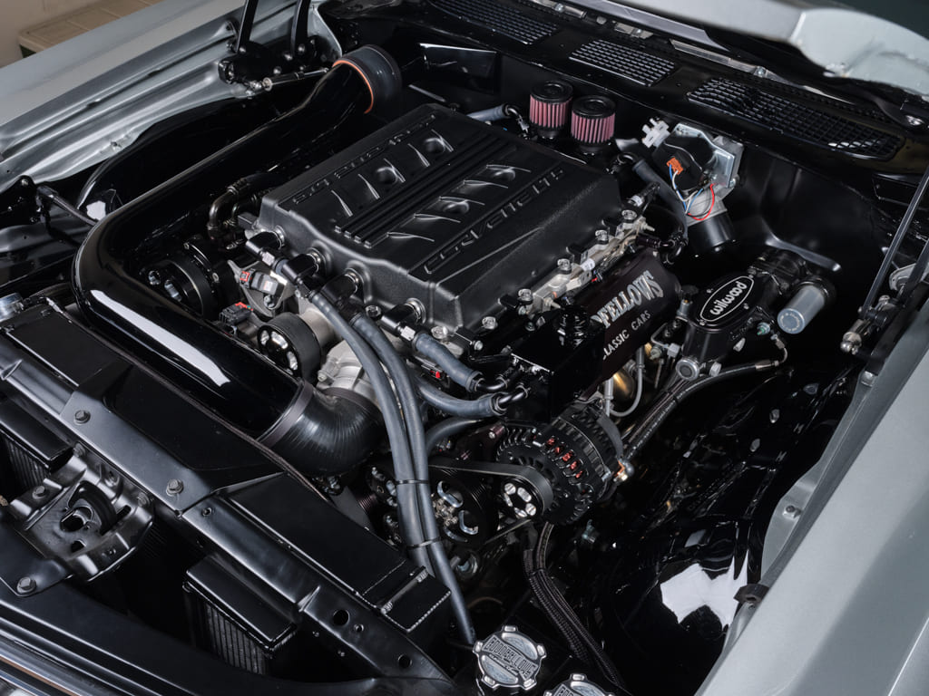 007 Detailed engine bay of a silver 1970 Chevelle SS with modern upgrades