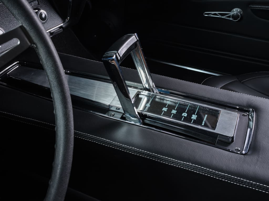012 The center console and automatic shifter in the interior of a 1970 Chevelle SS