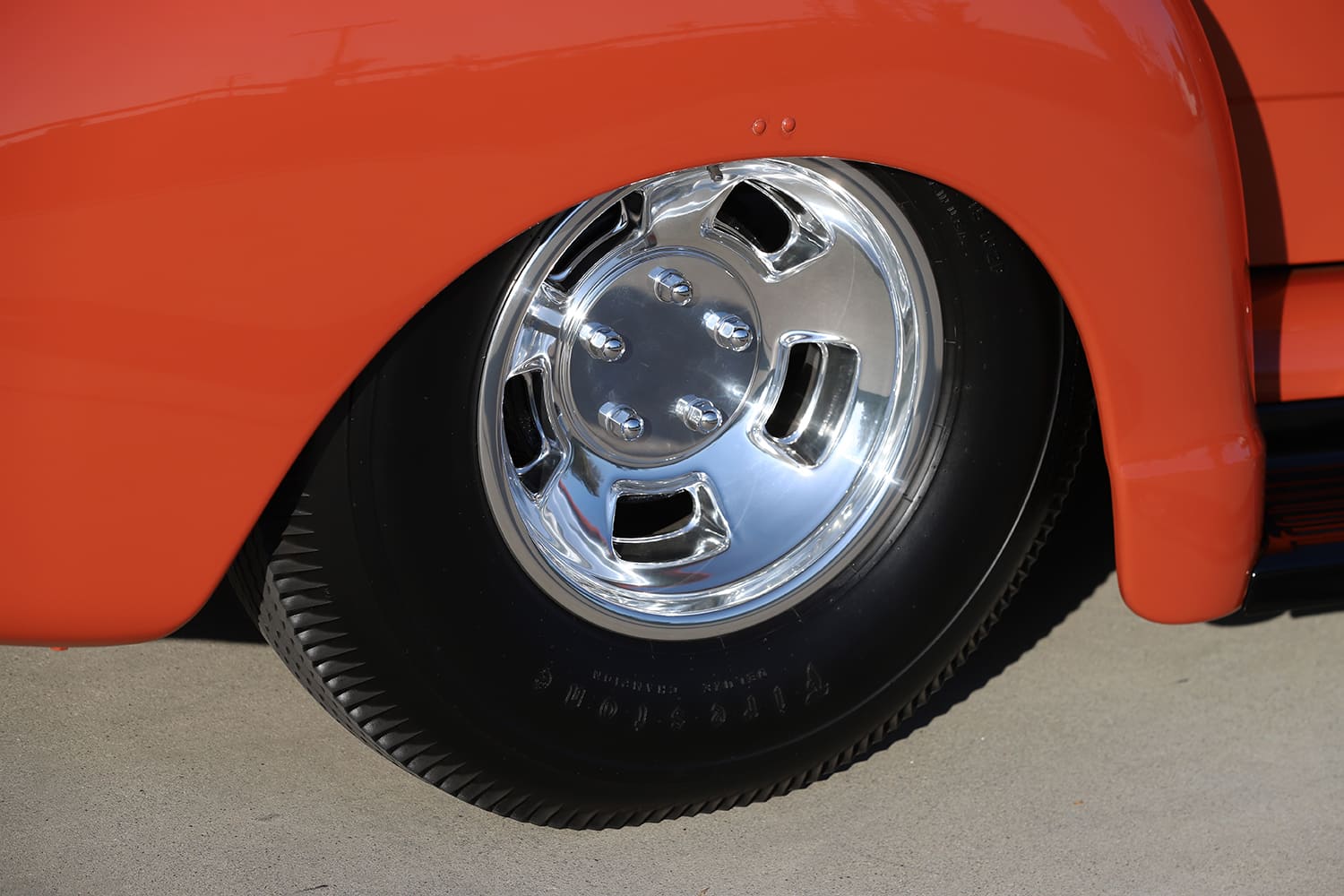 Oja then removed the Appleton spotlights before working with Richard to figure out the best way to fit the Halibrand-style wheels and bias-ply tires. They ultimately settled on 6.40-15 and 8.20-15 Firestone Deluxe Champions, combined with 5.5- and 8-inch-wide Real Rodders rims. With some trial, error, and patience from Oja, they figured the rear wheels needed to be narrowed down to 6.25 inches, a task entrusted to Eric Vaughn. He also shaved the back pads nearly 1/2 inch for clearance, and recontoured the rims’ lips to match the front wheels’ softer edge. Schilling Metal Polishing in Santa Ana, California, gave them a beautiful shine, too.