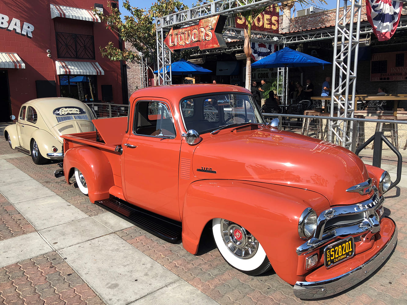 Through the years, Richard never owned a truck, yet he always admired a handful of them—starting with Eddie Tovar’s amazing and multiple show–winning 1954 Chevy. “I first saw it at an event at the Felix Chevrolet dealership in about 2008,” he adds. “It easily won Best of Show that day and I remember being knocked out by the level of detail.” Richard was especially drawn to the pickup’s color, not from the old Volkswagen palette as he thought, but a rarely chosen 1954 Chevy truck hue called Coppertone. At the time, the vehicle remained almost entirely stock inside and out, while featuring a handful of unique particulars: 1954 Bel Air wheel covers, Appleton spotlights, an industrial step bumper on the back, and so on. The bed additionally welcomed a well-built box that housed part of the hydraulic suspension system. Richard later learned that Tovar created it as a “tribute truck” to resemble the one his grandfather had bought new in 1954; it even had the same distinctive rear bumper.20 1954 Chevrolet 3100 whitewall tires slammed stance parked downtown classic pickup custom rod