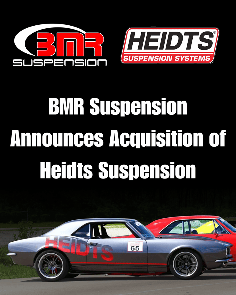 BMR Suspension has acquired Heidts Suspension. This acquisition allows BMR Suspension to further its business goals of providing American-made suspension and chassis products at an affordable price.