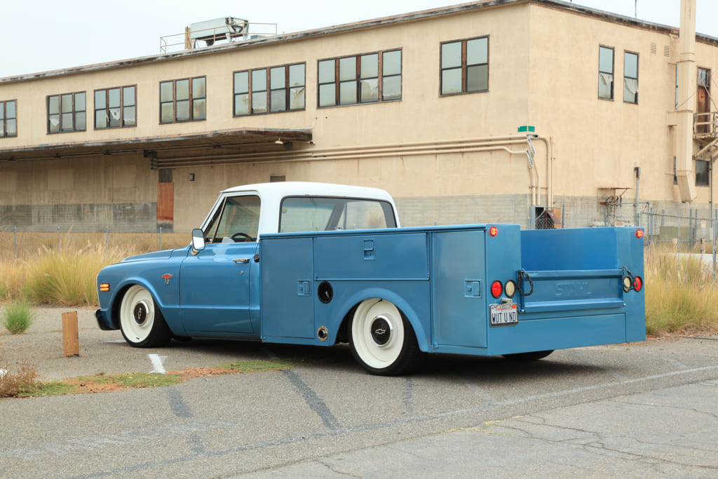 Described by Ruben as a “barn find,” this particular C10 started life as a factory stake bed, but a previous owner had swapped the bed out for a utility box, which is the way Ruben first spied it. With running his What U Need construction company, he naturally felt connected to the utilitarian ride and worked a deal to trade a ’68 Cadillac he had for it.
