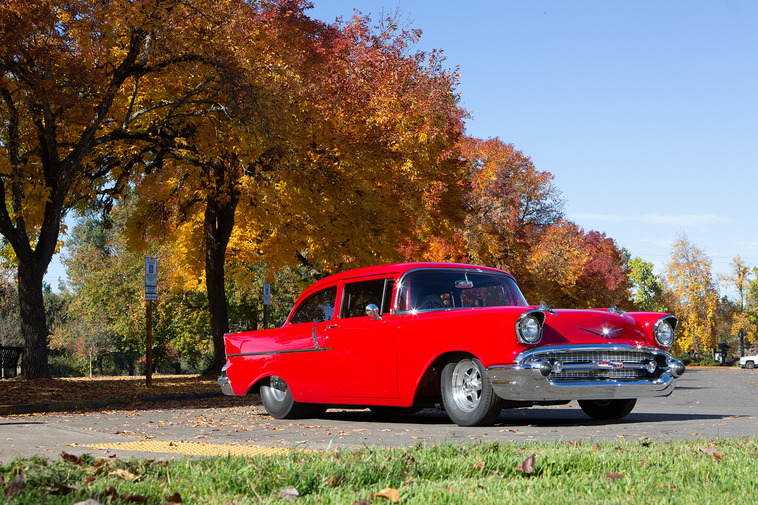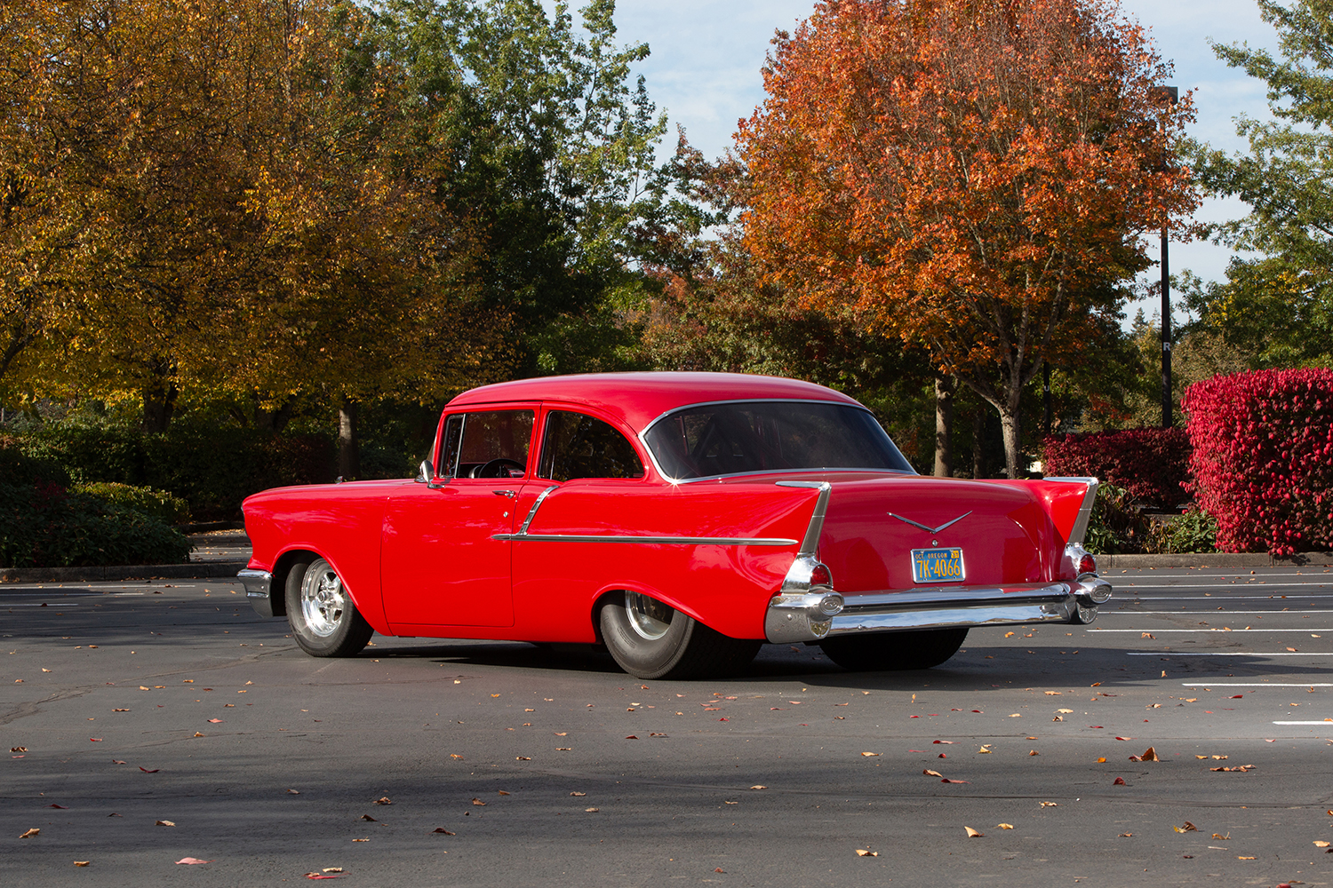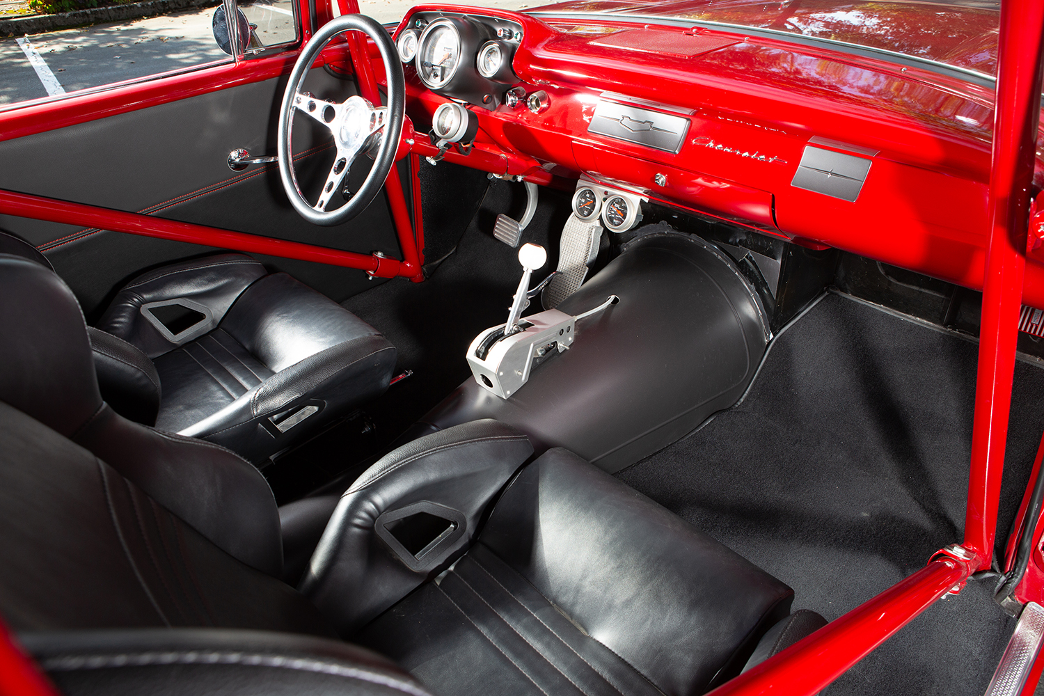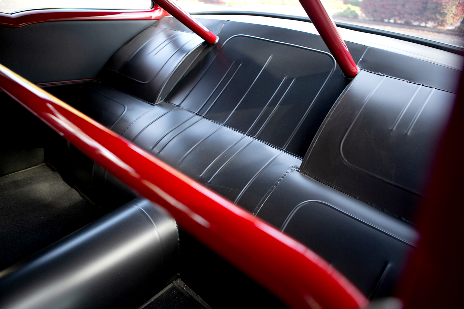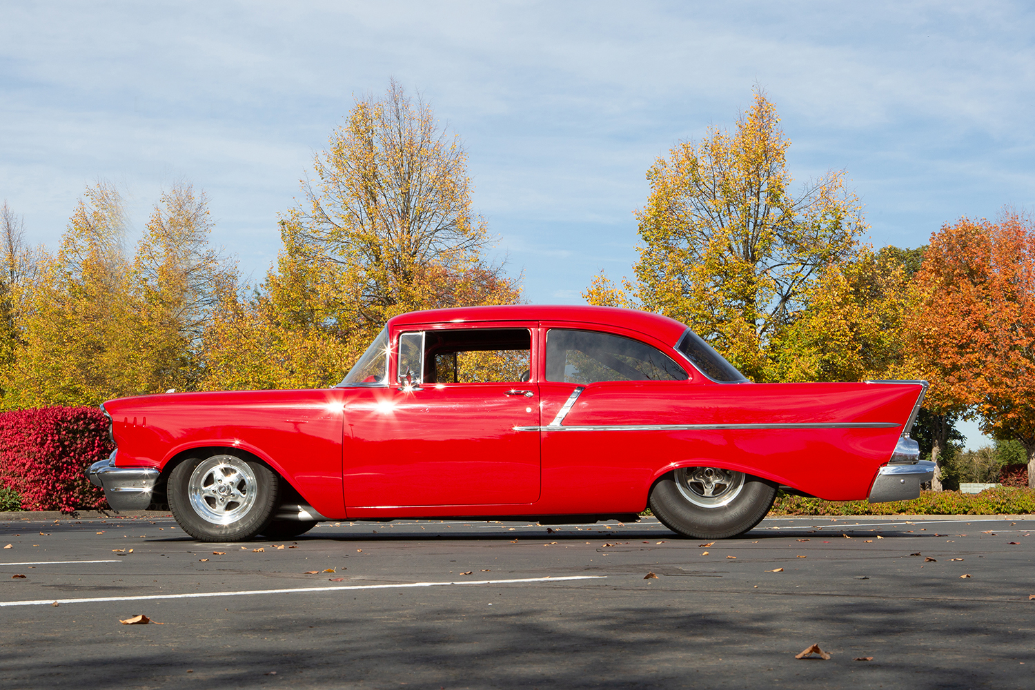 The car’s Glasurit Salsa Red paint, expertly applied by Rich Chamberlain, perfectly complements the 1957’s timeless body lines. Gary took on the bulk of the bodywork himself, repairing the aforementioned roof, customizing the firewall, and making sure every panel fit like a glove. The result is a flawless exterior giving the car exceptional eye appeal.