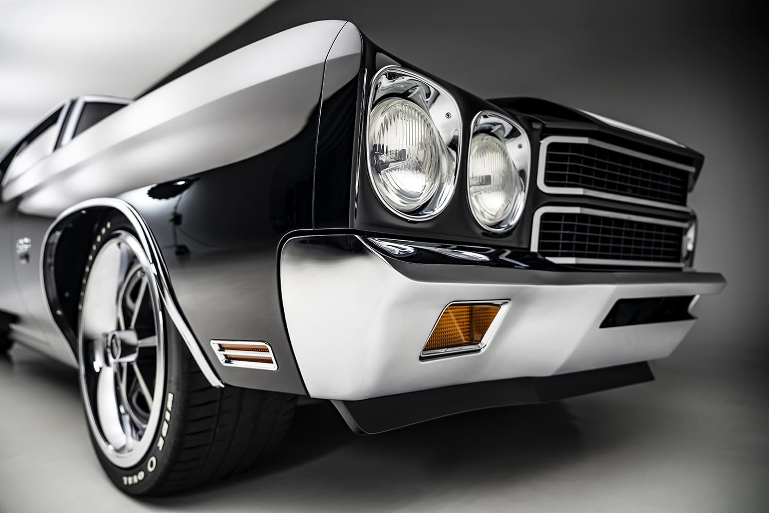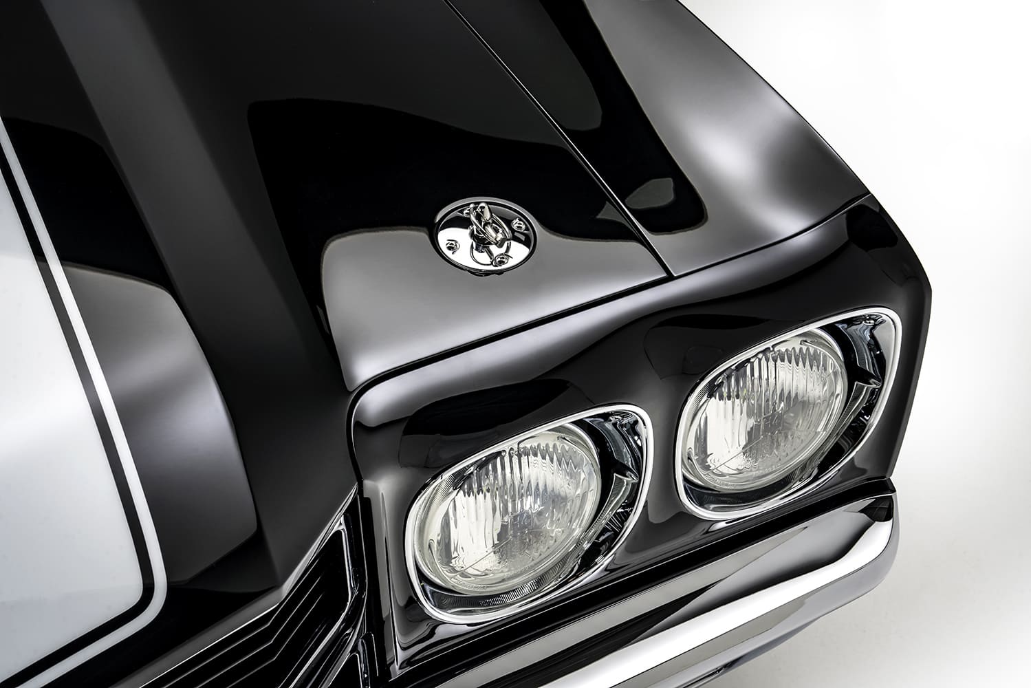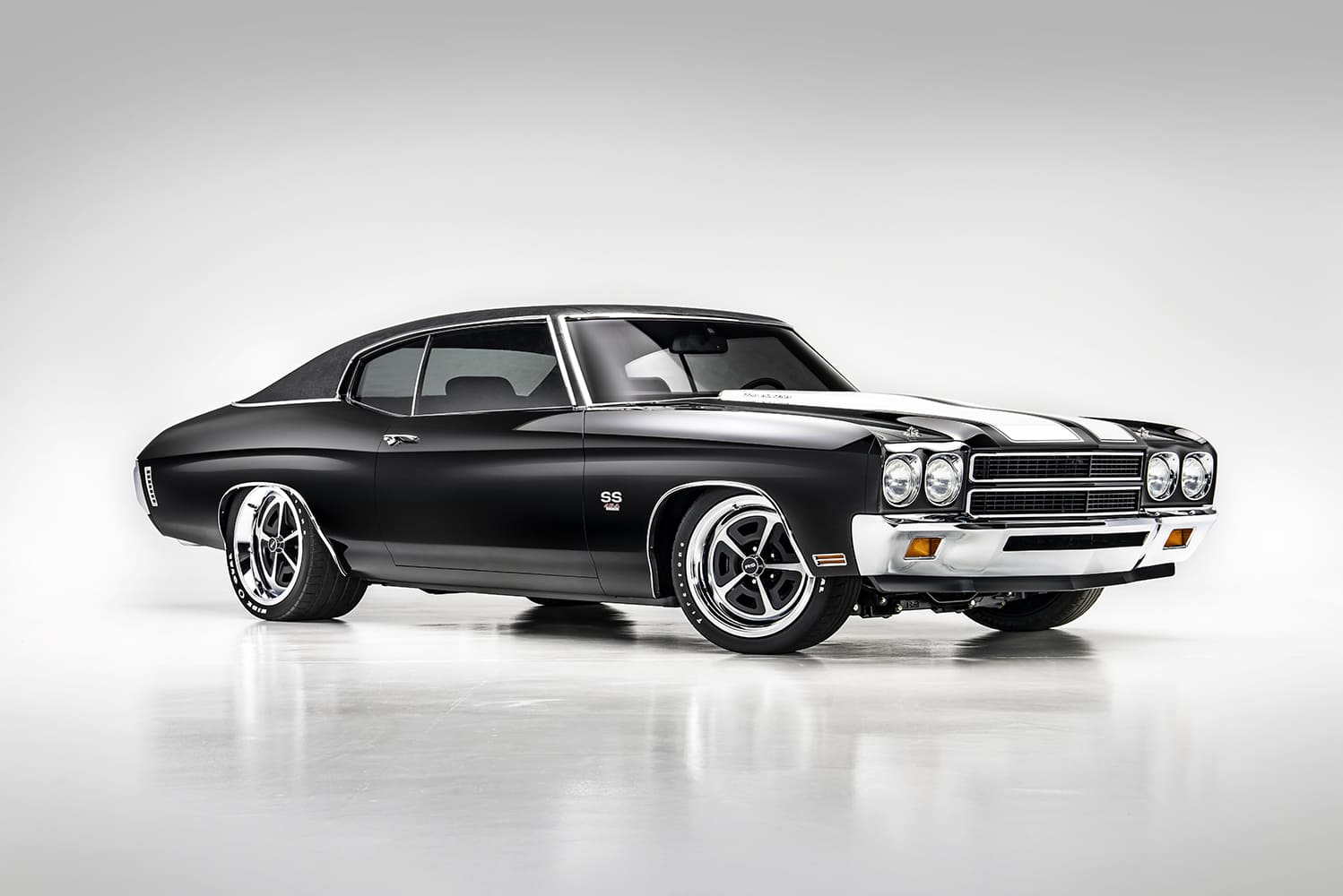 The paintwork and final bodywork were pivotal to the project, executed by Jonathon Goolsby of Goolsby Customs. The striking combination of Glasurit black and white was carefully selected to reflect the iconic look of the muscle car era. The factory stripes, also designed by Goolsby, added an extra layer of authenticity and flair, ensuring the Chevelle stands out in any crowd.
