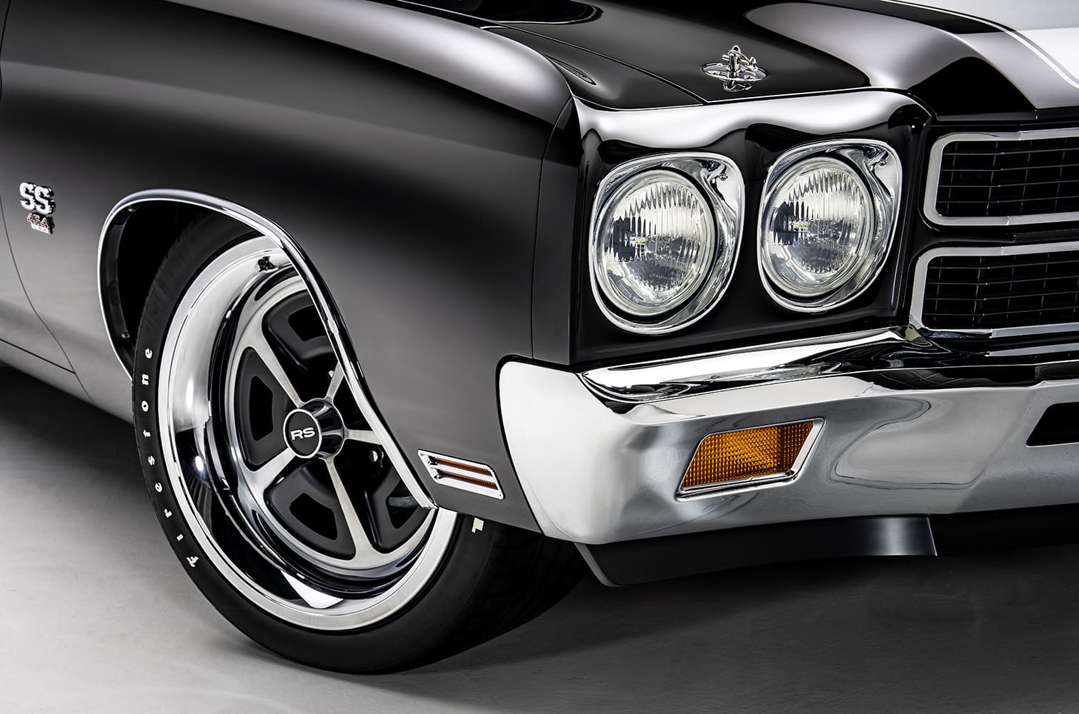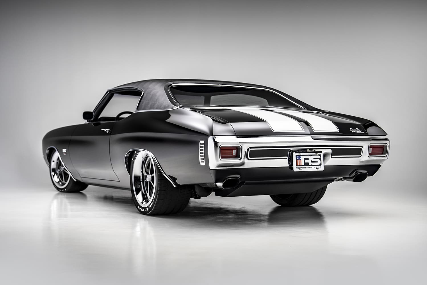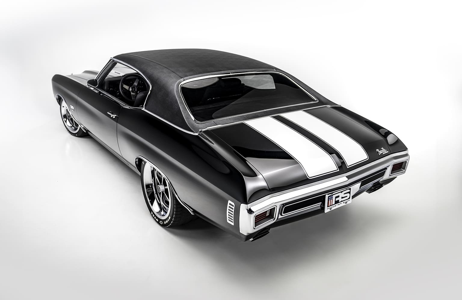 The induction system leverages a GM carb-style manifold with a drive-by-wire throttle body, while the ignition is equipped with a faux distributor and coil from LS Classics along with an XS battery. The exhaust is based on a 3-inch stainless steel system fabricated at RS in conjunction with a pair of Borla mufflers. Working with the potent V-8 and a chromoly driveshaft, the power is moved rearward via a Bowler Performance carbon upgrade T-56 Magnum six-speed.