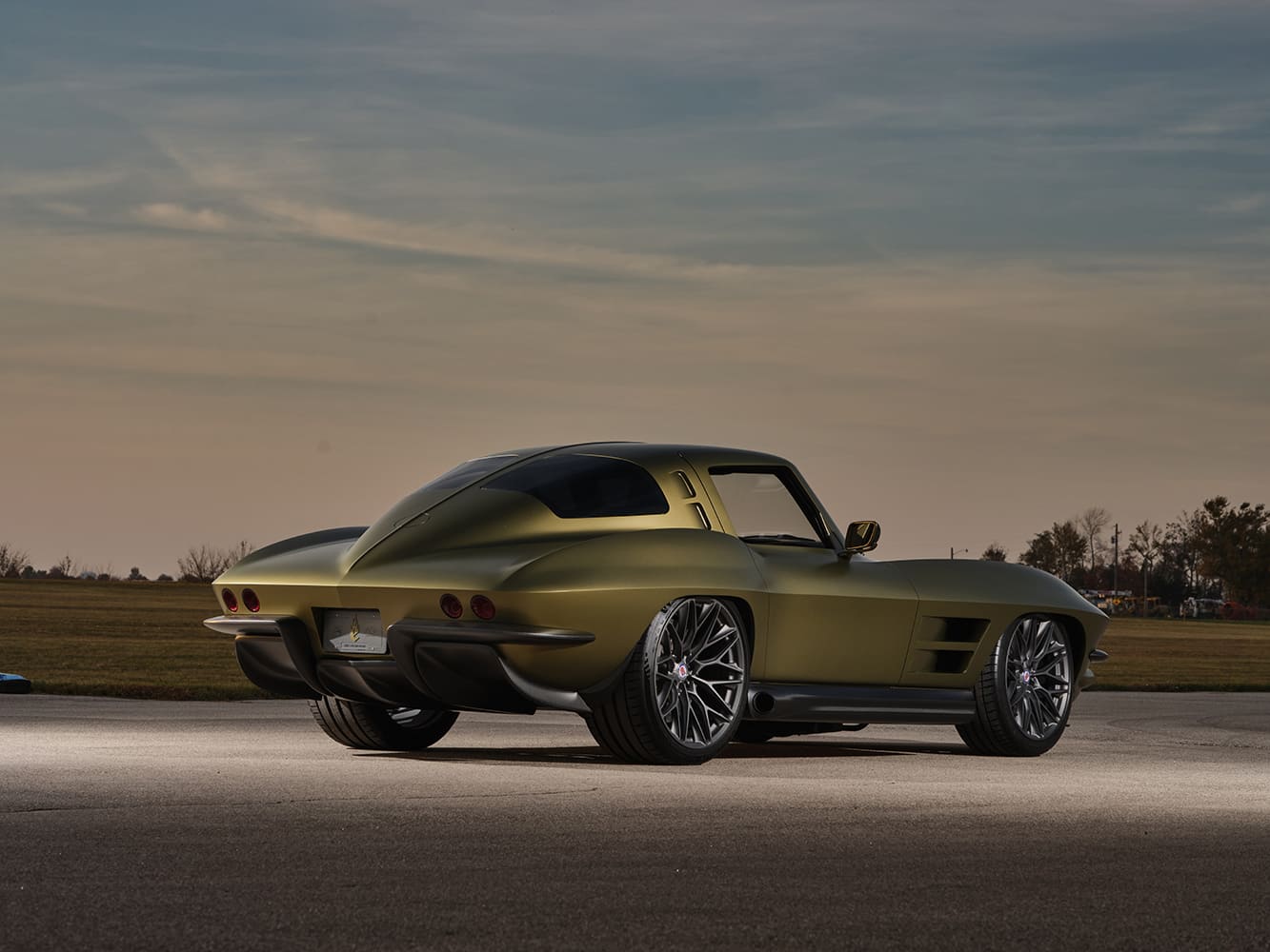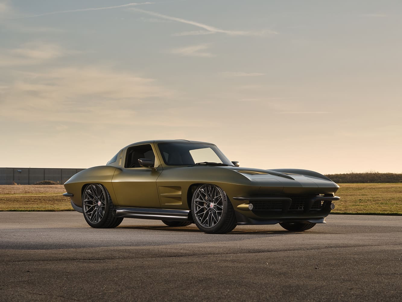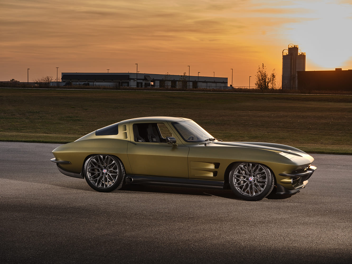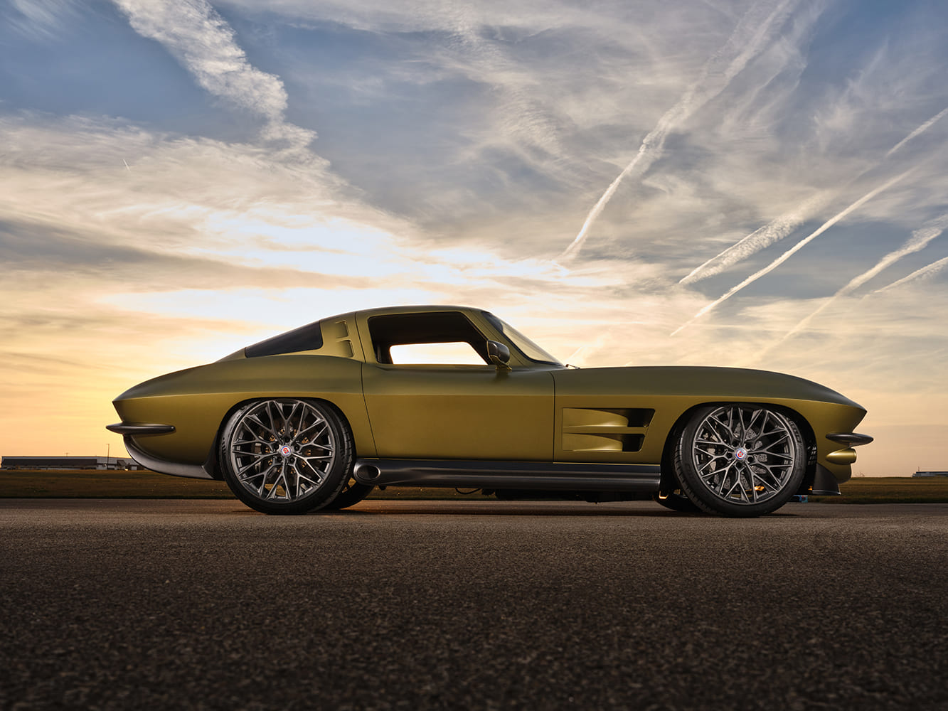 006 1963 Corvette sunset side shot modern wheels sculpted fenders