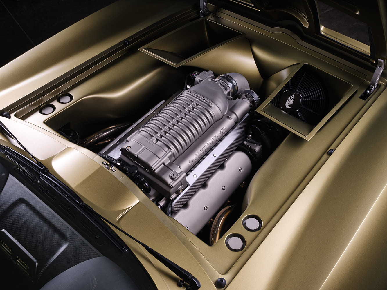 008 1963 Corvette Whipple supercharged V8 engine bay carbon details