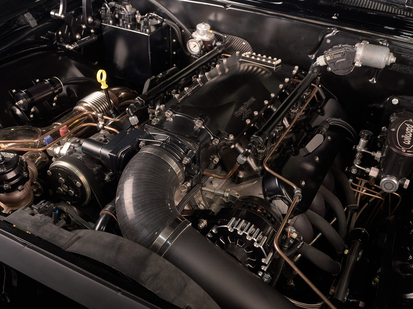 Brakes: Wilwood 14-inch rotors and six-piston calipers front and rear, Wilwood master cylinder, Wilwood proportioning valve, hydroboost brake assist