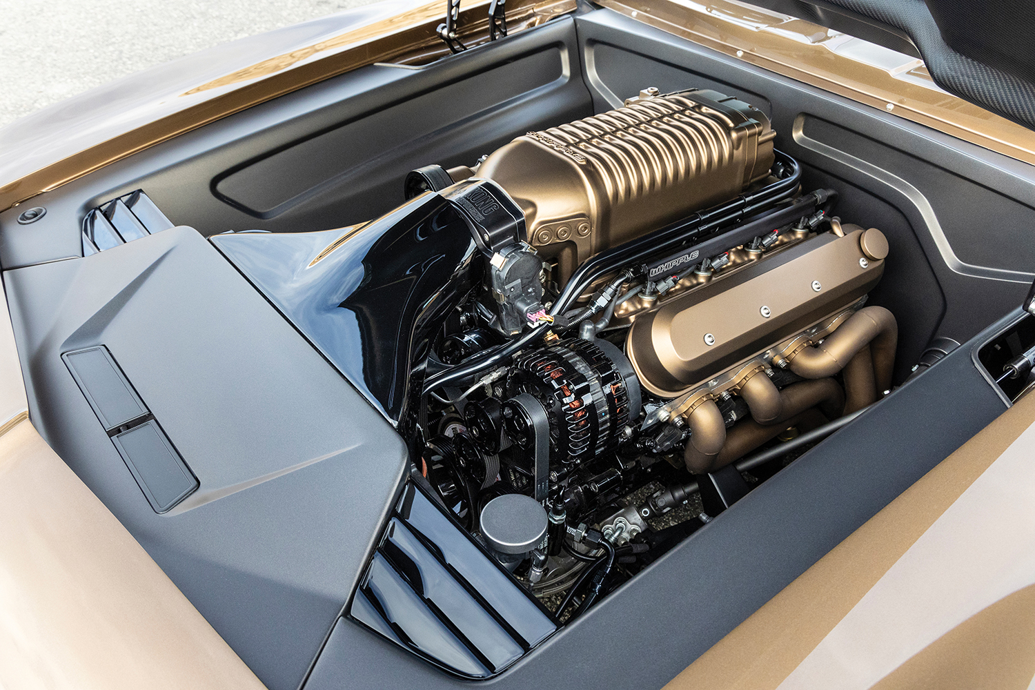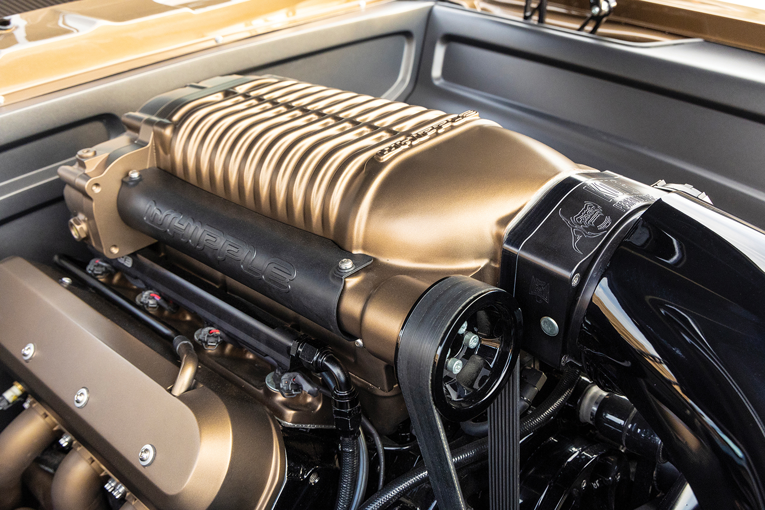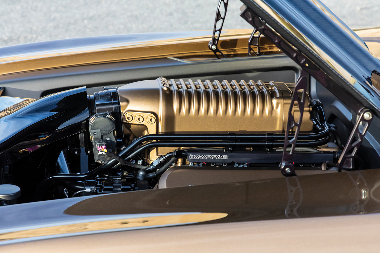 Ancillaries: Taylor wires, Aeromotive fuel system with in-tank TVS brushless pump, Rick’s Tanks fuel tank, Ringbrothers hood hinges, SPAL fans