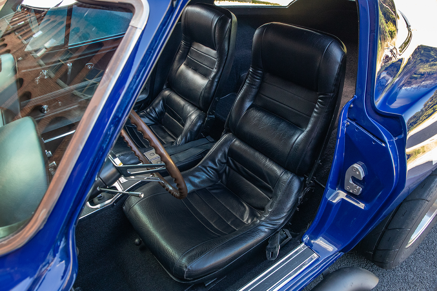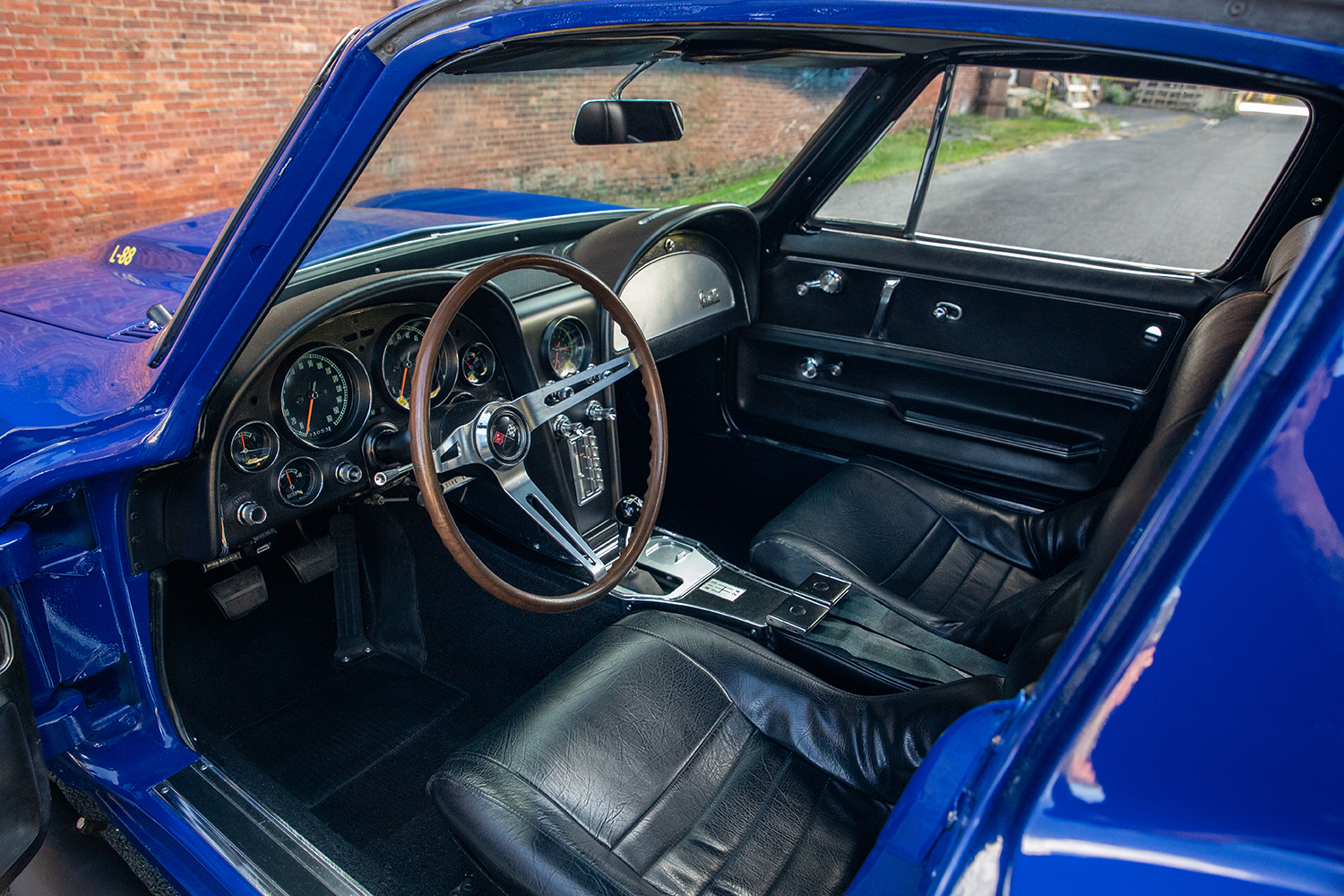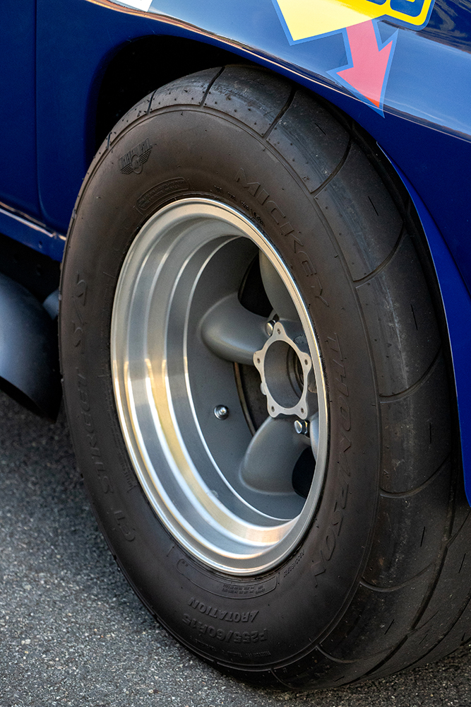 Frank chose American Racing Torq Thrust D wheels, sized 15×7 in the front and 15×8 in the rear and wrapped them in Mickey Thompson rubber (235/60-R15 in the front and 255/60-R15 in the rear), giving the Corvette that race-inspired, period-correct look.