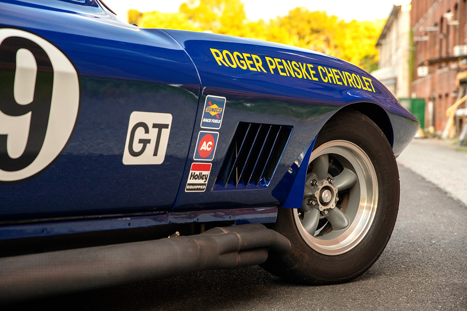 When he purchased the car, it was far from being in pristine condition. It had small flares in the front fenders, oversized rear fender cuts for larger tires, shoddy bodywork, and even a mismatched 1967 nose. However, it was those imperfections that made it the perfect candidate for his Sunoco tribute project, which was inspired by the real Penske Corvette he saw at the Corvettes at Carlisle event.