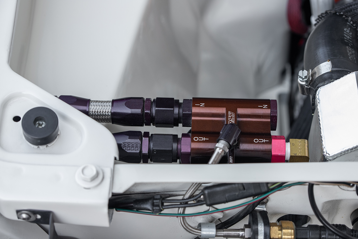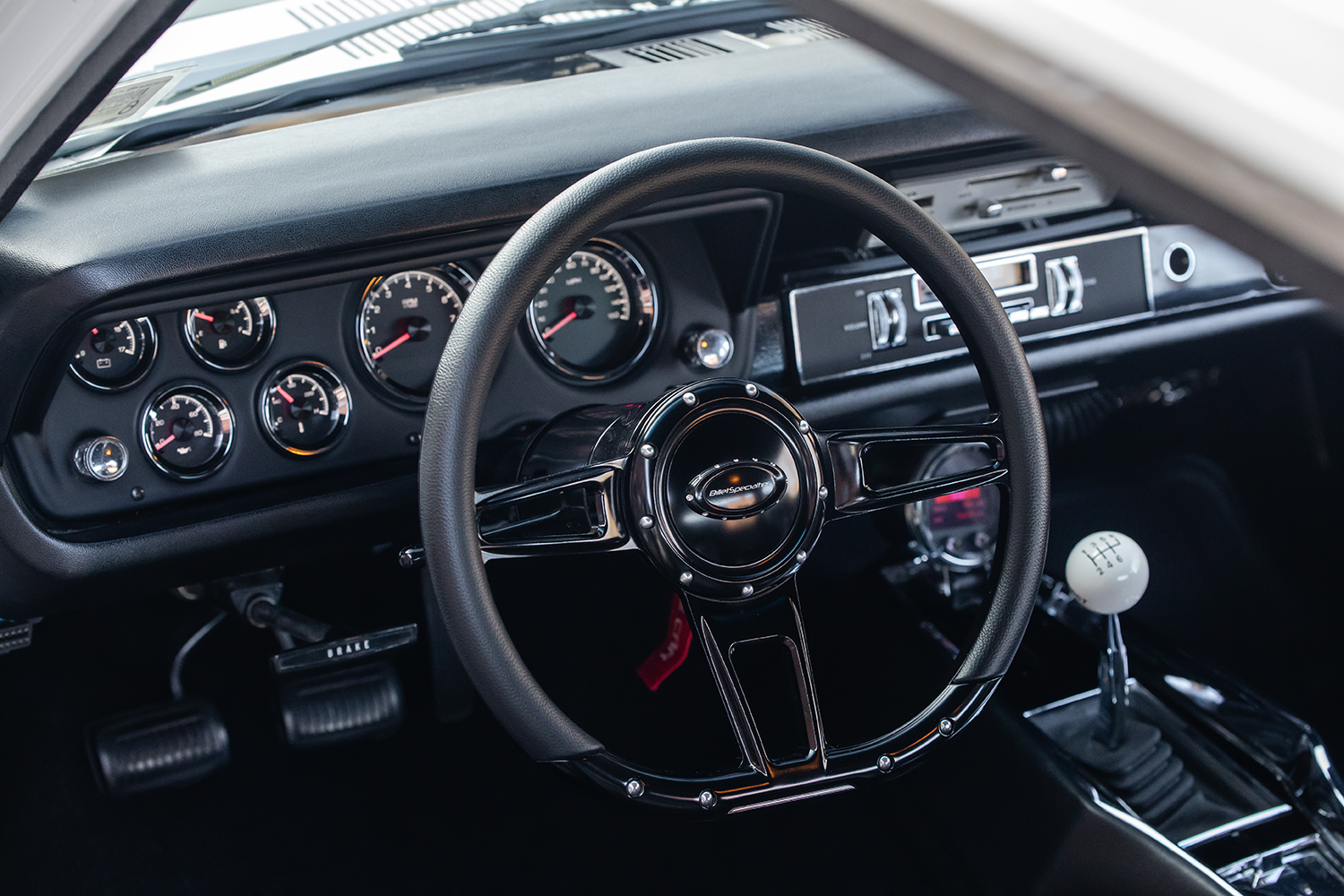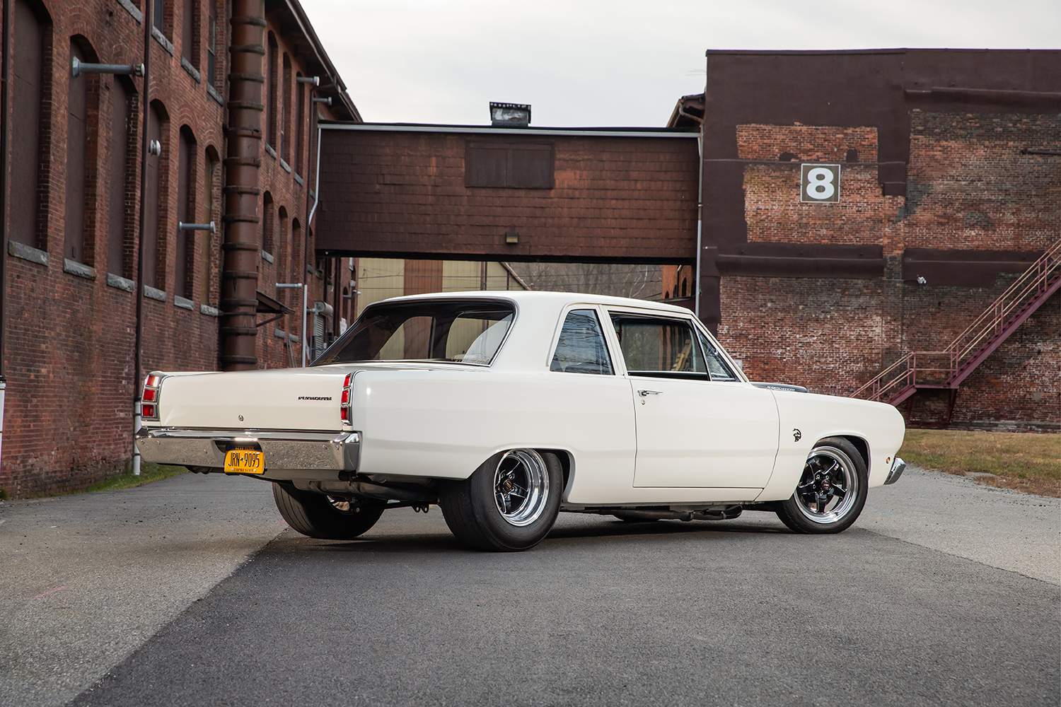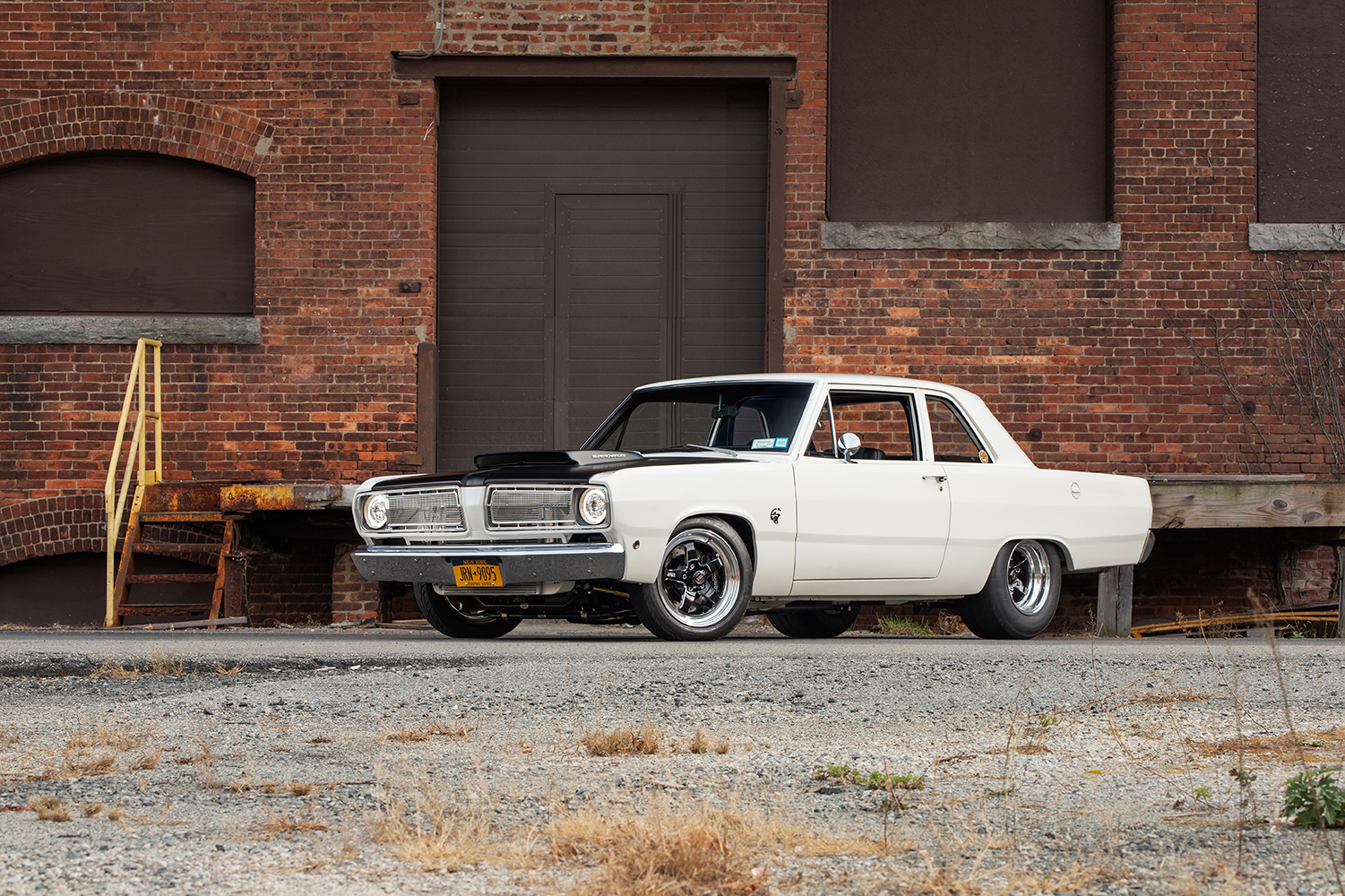 We have all come to know the body as a Mopar A-body, a 1968 Plymouth Valiant, but this one has a staggering amount of power. The quarter-panels are Dart while the side moldings have been removed. A modified firewall and tunnel, a custom steel hood outfitted with a nifty scoop, and 3-inch custom wheeltubs were also installed. The bodywork and the subsequent paint come from the efforts of Steve and his dad, who sprayed on the PPG Concept DCC in White while the hood is painted in black and then covered with PPG Global Matte Clearcoat (D8115).