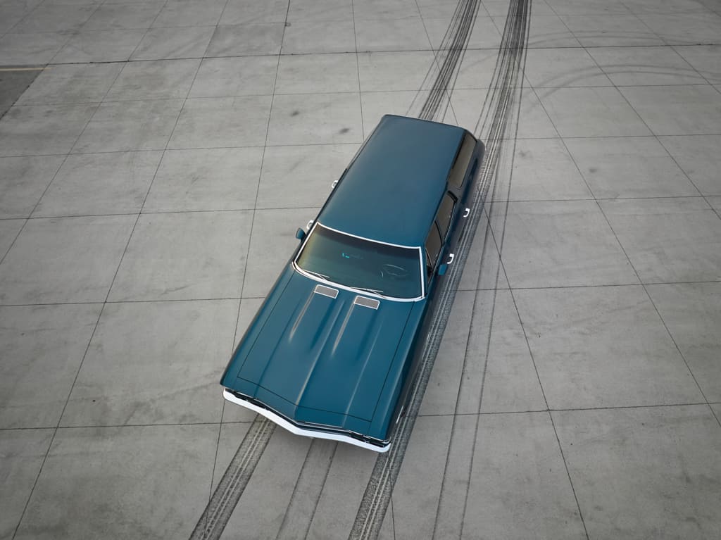 017 69 Chevelle Nomad emblem on a blue exterior