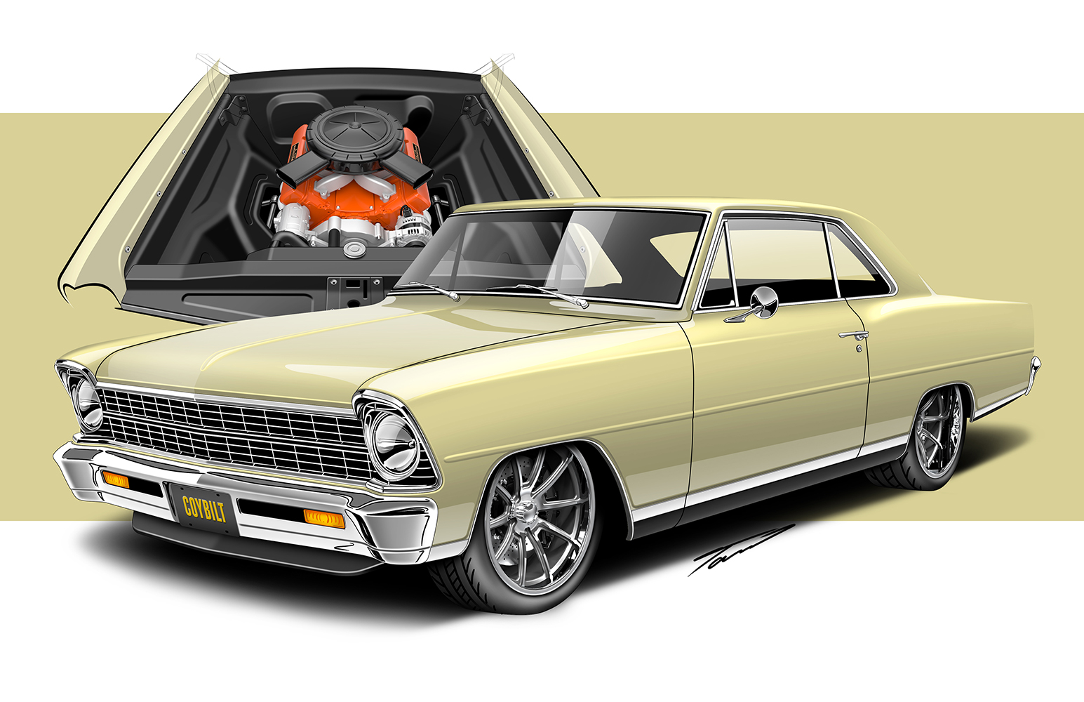 Butternut Yellow has to be the ultimate color for a sleeper restomod Nova. With relatively few exterior mods, this 1967 Nova absolutely fits that vibe. From the outside your only clues as to the car’s potential will be the stance and Schott wheels. Pop the hood and you’ll get the full story. A backdated LS engine completes the whole vintage look but with modern performance. Sheetmetal-like DSE inner fenders and a smoothed firewall lets you focus on that detailed powerplant.
