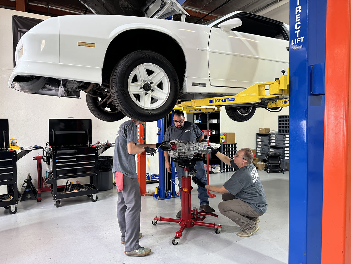 With a long day spent in the shop, the ACP crew had the old trans dropped out of the RS in no time and set their sights on getting that five-speed installed by that afternoon. After some initial prepwork, the trans was mounted, and the crew was soon filling the fluids as Danny anxiously stood by. Before the bell tolled 5 o-clock, Danny was in the driver seat of the Camaro, pulling the car out of the ITGM Tech Center while simultaneously pulling the First gear in his freshly swapped five-speed Camaro.