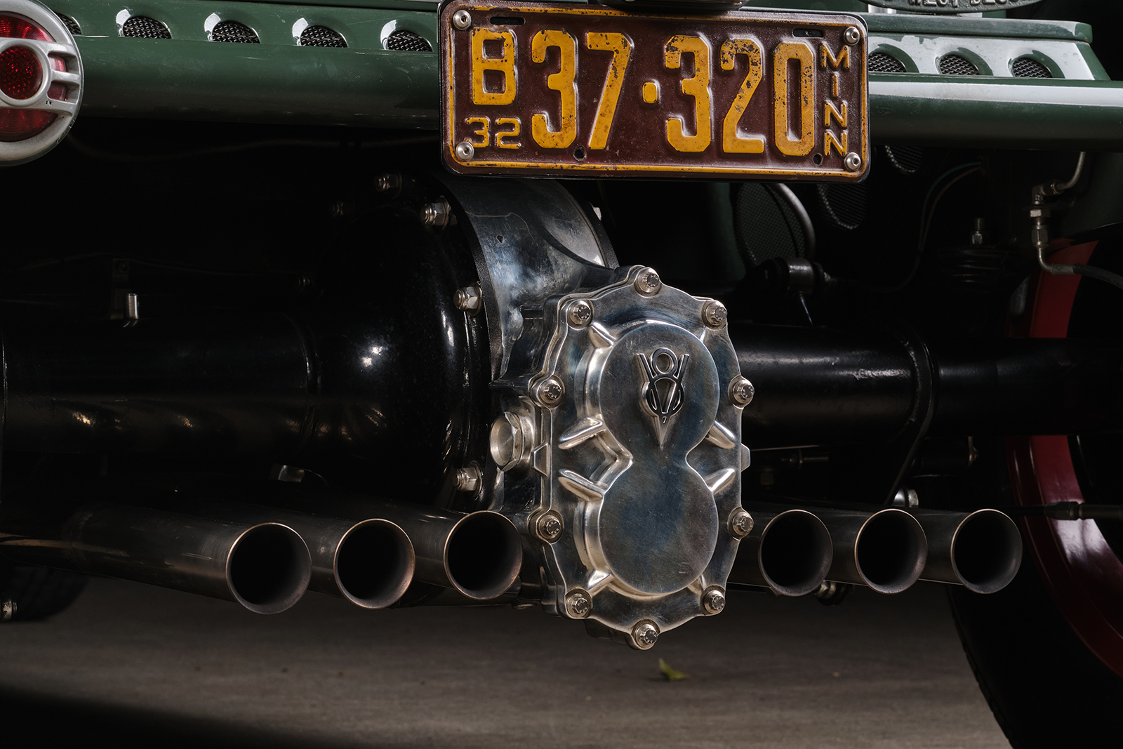 Cornhusker was also responsible for placing the custom 16-gallon gas tank within the trunk. The always-reliable Excelsior Stahl radial rubber from Coker measures 5.00R16 in front and 7.00R18 in back, all mounted to Ford wires. A pair of ’35 Ford 16-inch wires were used in front while 18s that were widened 2 inches followed in the rear.
