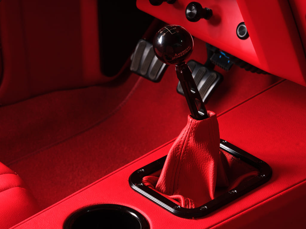 A manual overdrive transmission was a must, so in went an American Powertrain upgraded TREMEC T56 Magnum six-speed transmission that offers smooth yet aggressive gear changes via an American Powertrain twin-disc clutch. A PST aluminum driveshaft sends power to a Moser 12-bolt rearend outfitted with an Eaton Truetrac limited slip, 3.73 gears, and 33-spline Moser axles.