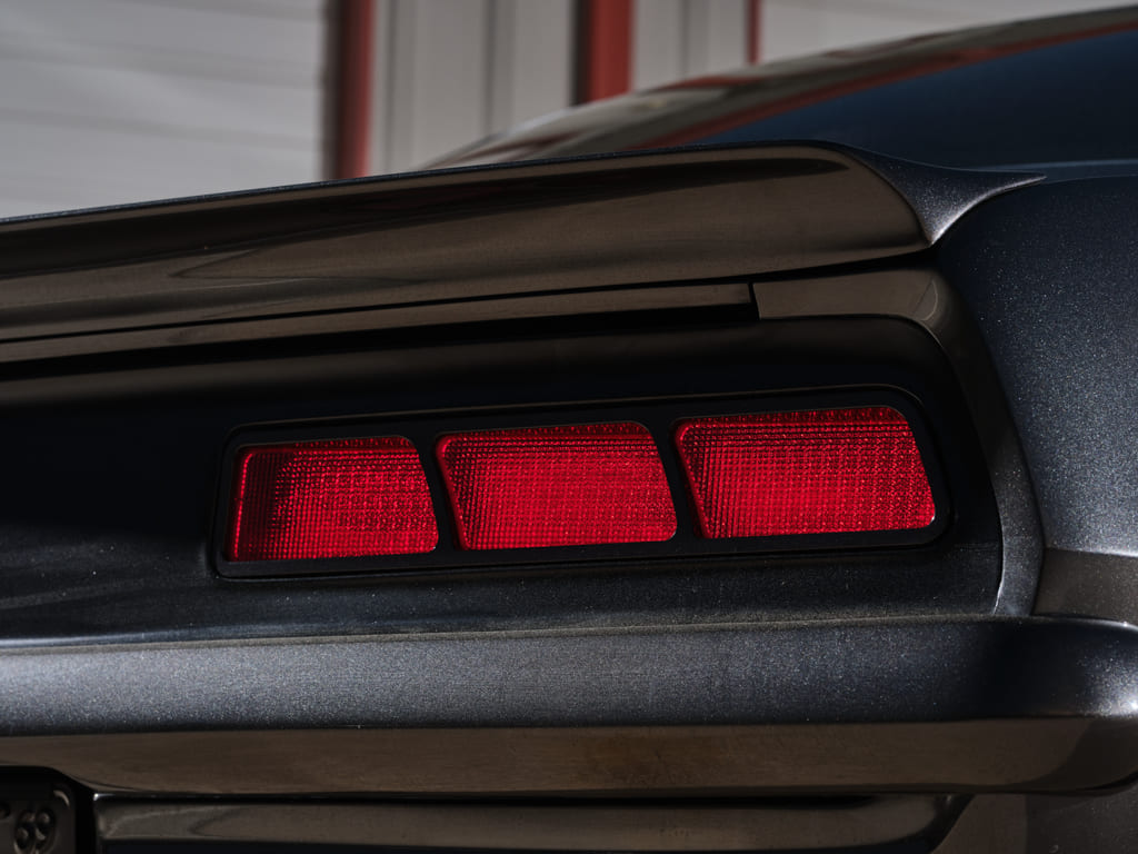 The crew at Octane and Iron hung the fresh metal and custom-fabricated the tail panel to accommodate the custom EVOD exhaust cutouts. From there the car was sent to Rf Customs in nearby Magnolia, Texas, where Bryan and Ray Reitz massaged the original metal to perfection prior to dousing the Camaro in a decadent layer of PPG Magnetic Gray Metallic.