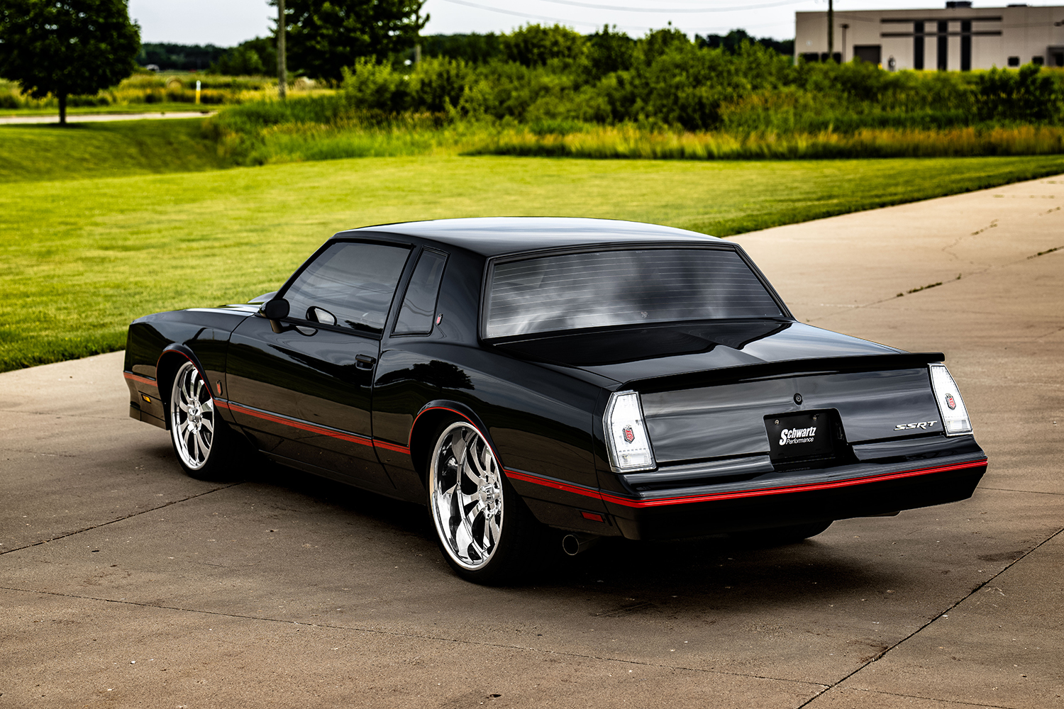 To complete his journey, he enlisted the help of Schwartz Performance for both their expertise in products to be used and avail himself of their building expertise. Derrick opted for a Schwartz Performance G-Machine chassis that is a bolt-in operation, given it uses the factory mounting points. There are a couple of alterations: The factory tank placement is moved from offset to centered, the spare tirewell is removed, and its new offering is supplied. From here, the G-Machine chassis is built to accept 345 rubber and up to 14-inch-wide wheels if a mini-tub is installed. In Derrick’s 1985 G-body, mini-tubs were installed to handle the full complement of Bonspeed wheels that measure 20×9 and 22×12 and are covered with Pirelli P Zero 255/30ZR20 and 335/25ZR22.